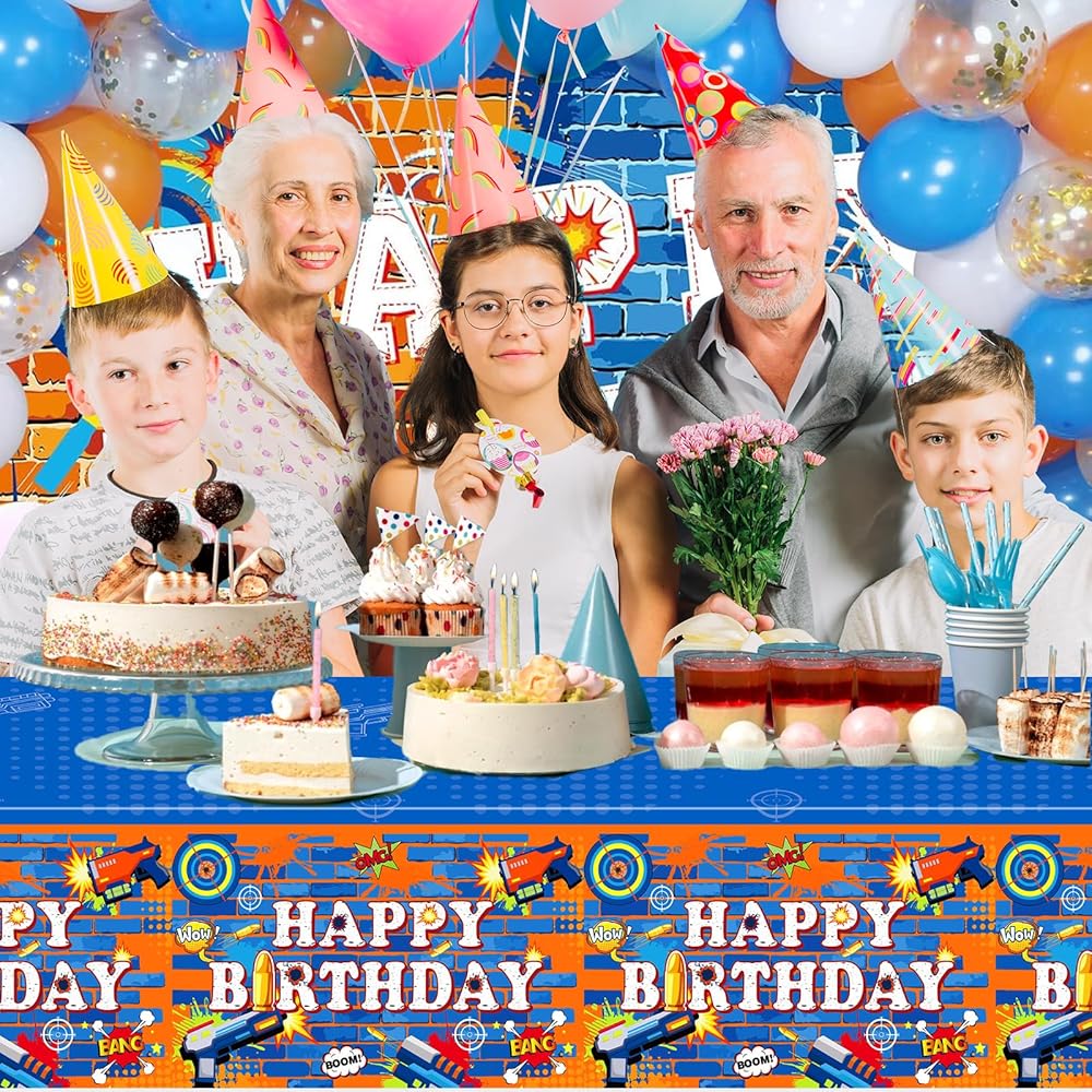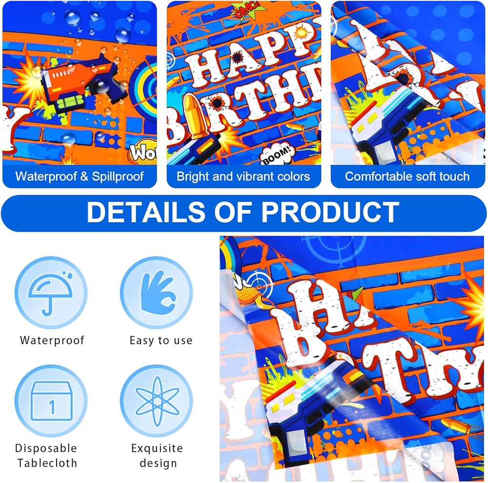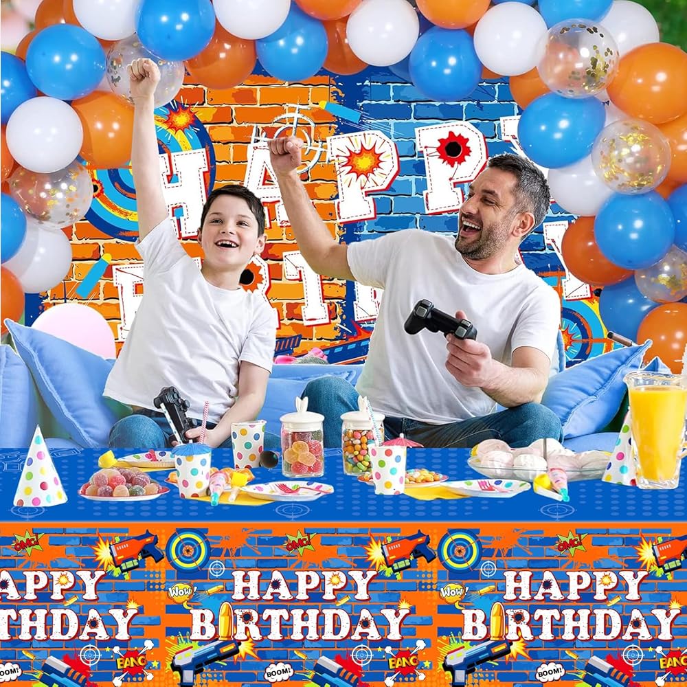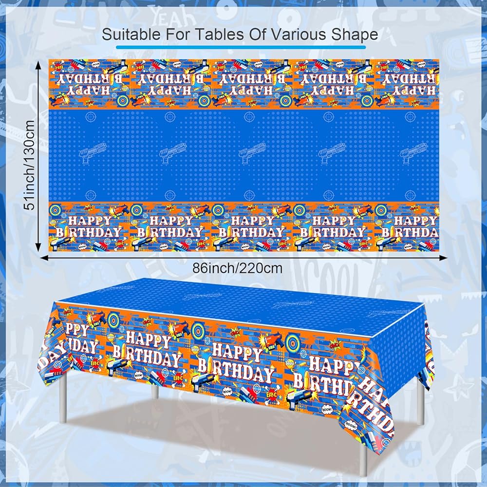 • PERFECT FOR DART WAR DECORATIONS: These 3 rectangular tablecloths, measuring 54" x 108" each, are the ideal backdrop for your little soldier's special day. Whether it's a nerf gun birthday party or any gunfight celebration, the dynamic design adds a playful and festive touch to your event decor. Complete the look with nerf party favors and nerf balloons for a truly immersive experience.