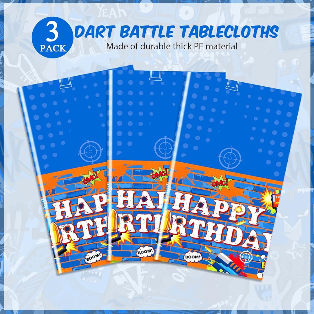 • DURABLE CONSTRUCTION: The Dart Battle Tablecloths set is meticulously engineered from premium-quality plastic, guaranteeing robustness against the rigors of play. These birthday tablecloth are designed to endure the excitement of dart war-themed events, ensuring a reliable investment for long-lasting use. Perfect for nerf gun birthday party and nerf party supplies for boys birthday.