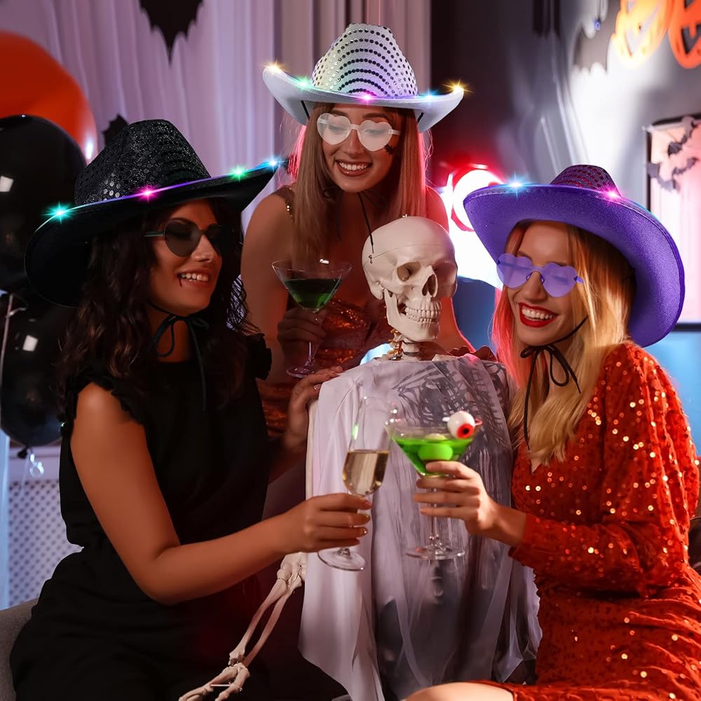 The LED cowboy party hats and preppy sunglasses are designed with bright flashing LED lights, so they will glitter and shine at your party, which are easy to attract people's attention, liven up the party atmosphere, and make you be the center of the party easily.