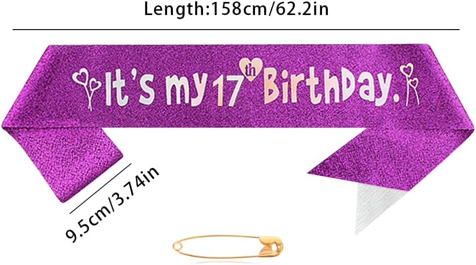 【Package】: 1 x "It's my 17th birthday" Sash, 1 x Rhinestone Crown, 1 x Pin.