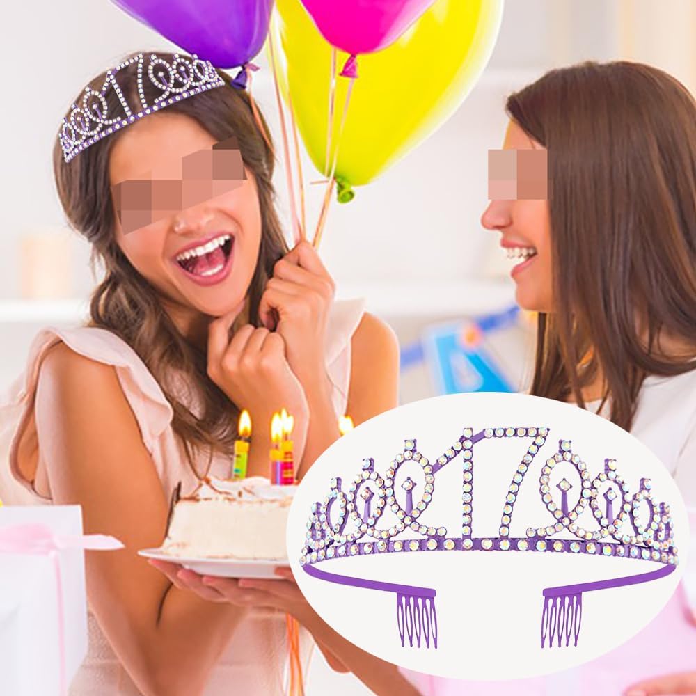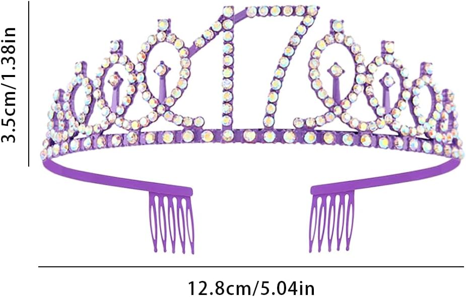 الأرجواني وشاح عيد الميلاد السابع عشر للفتيات عيد ميلاد الأميرة تاج الملكة تيارا حجر الراين عيد ميلاد عصابات عيد ميلاد فتاة وشاح زينة عيد ميلاد سعيد للفتيات 17 سنة لوازم حفلة عيد ميلاد