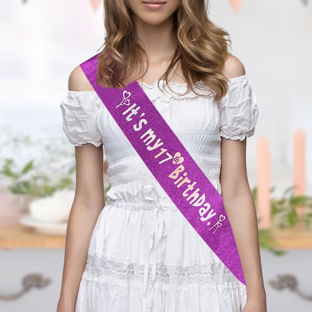 The birthday sash features purple color, printed with words to celebrate girl's birthday, elegant and gorgeous decoration, nicely caters to the warm and sweet birthday party atmosphere