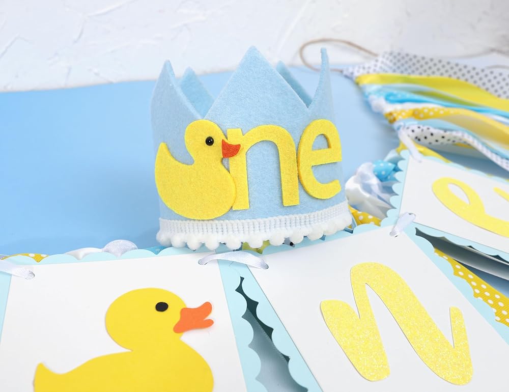 QUACK-TASTIC DESIGN - Adorned with cute rubber duckies and featuring a soft, light blue color, this birthday crown is sure to delight both kids and adults alike. The playful design captures the essence of childhood and adds a cheerful vibe to your party decor.