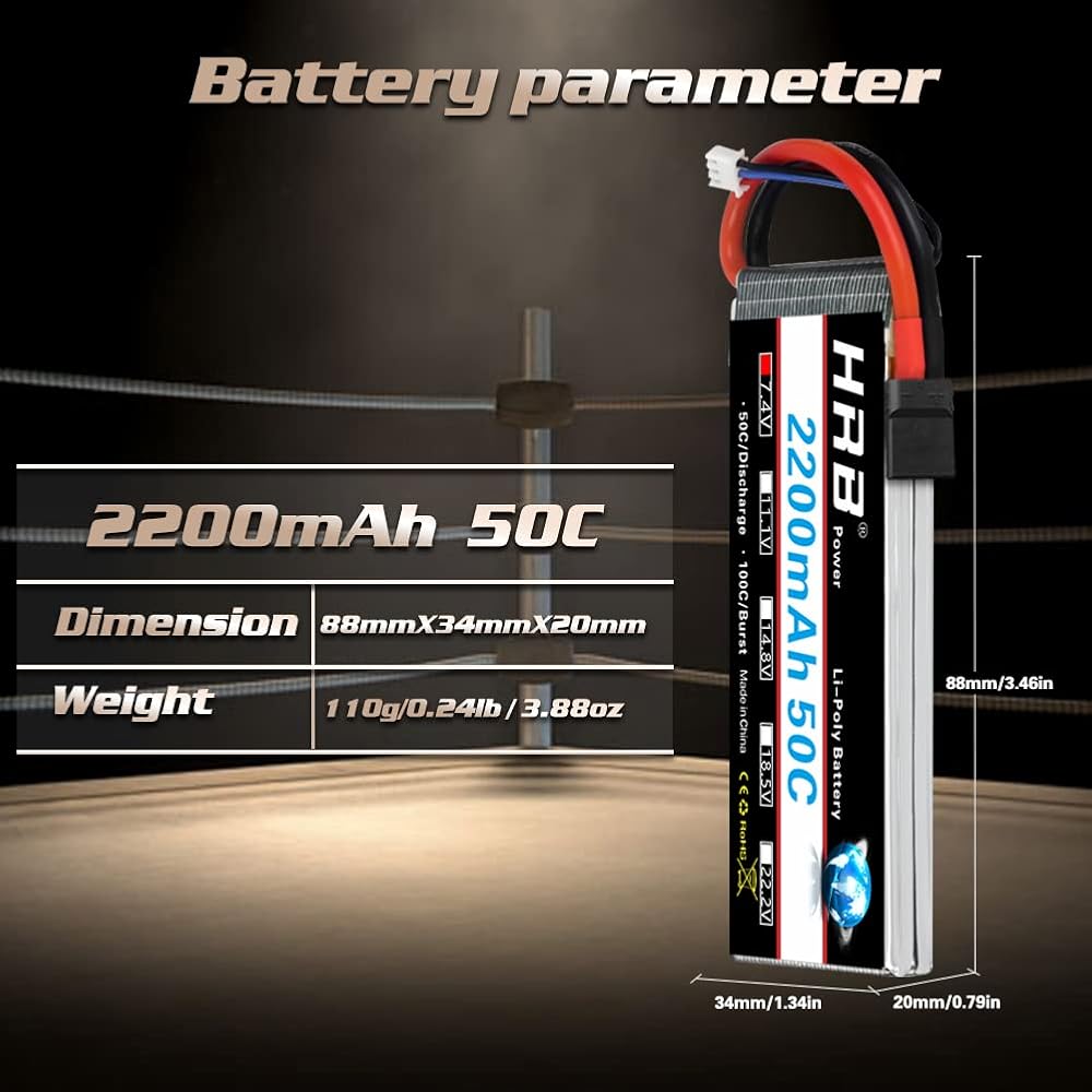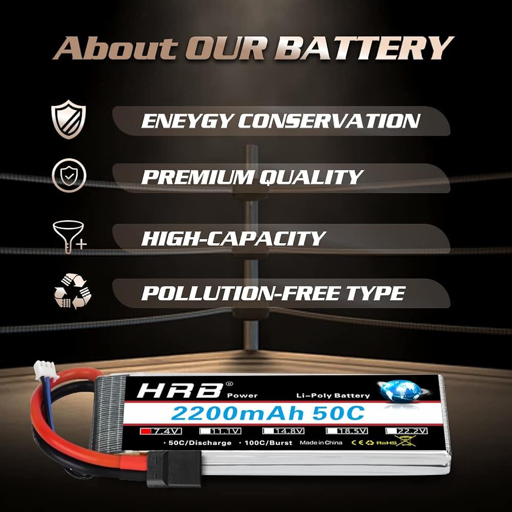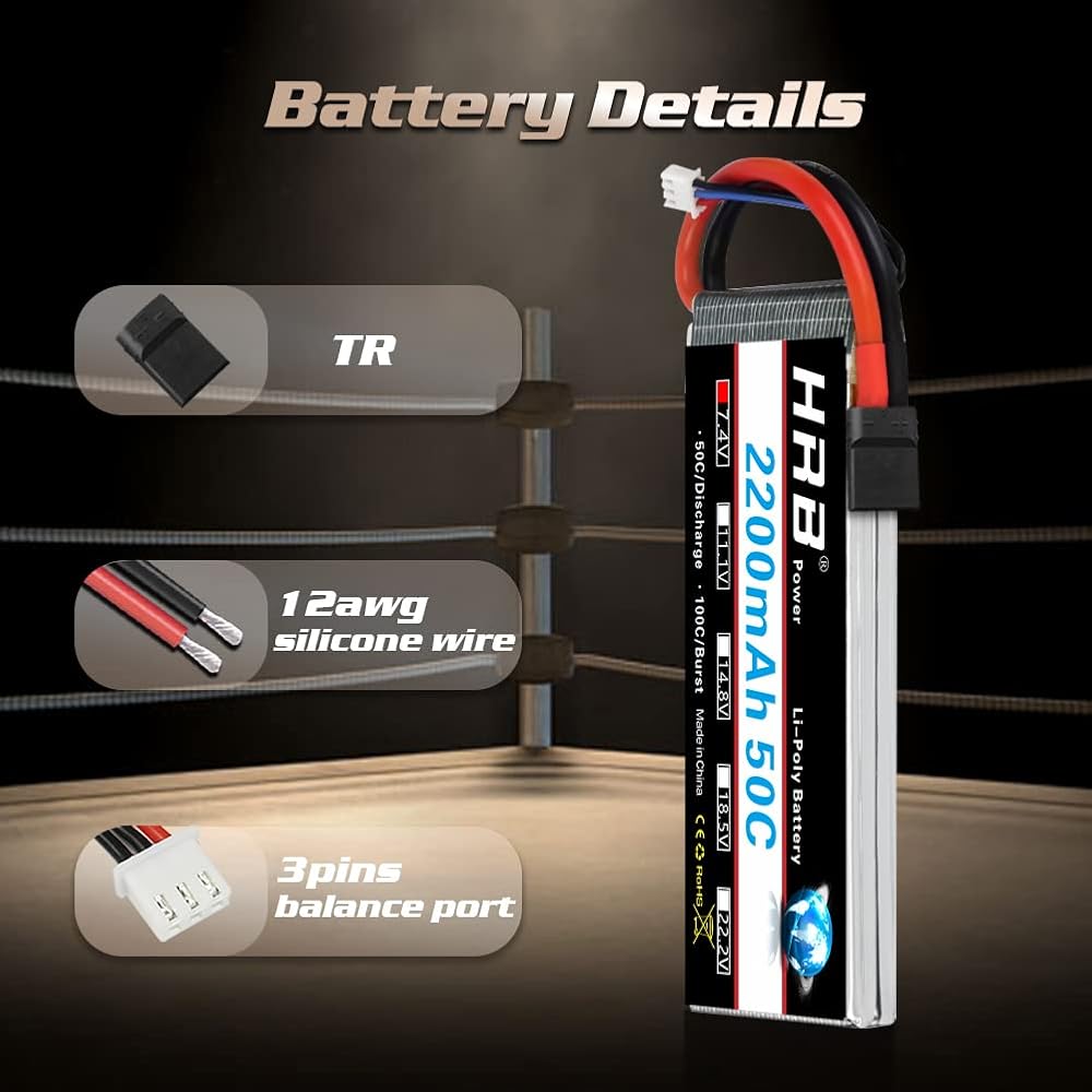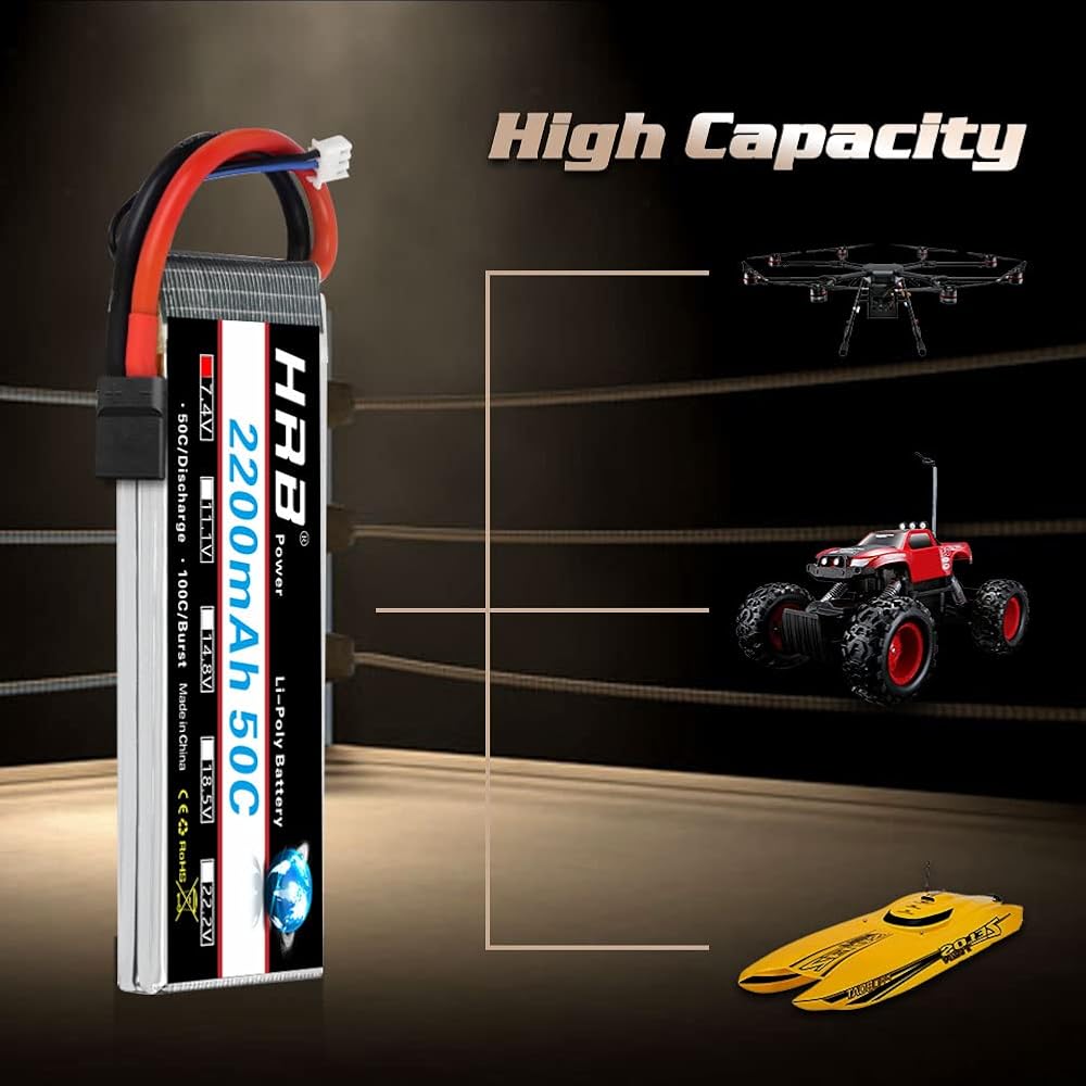 بطارية ليبو HRB 2S 7.4 فولت 2200 مللي أمبير في الساعة TR Plug 50C 100C متوافقة مع طائرة RC وطائرة هليكوبتر RC وسيارة RC وشاحنة RC وقارب RC