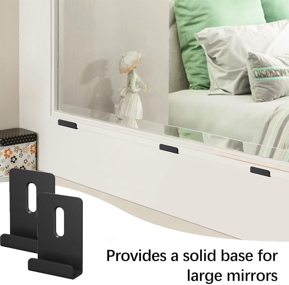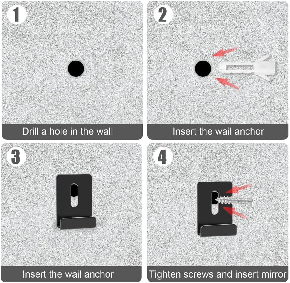 【EASY TO INSTALL】This heavy mirror hangers set for the wall comes with installation screws, allowing you to easily install it using tools. Just drill holes, insert the items into the appropriate locations, tighten the screws, and fit the mirror. Using multiple clips together ensures an ideal fixation.