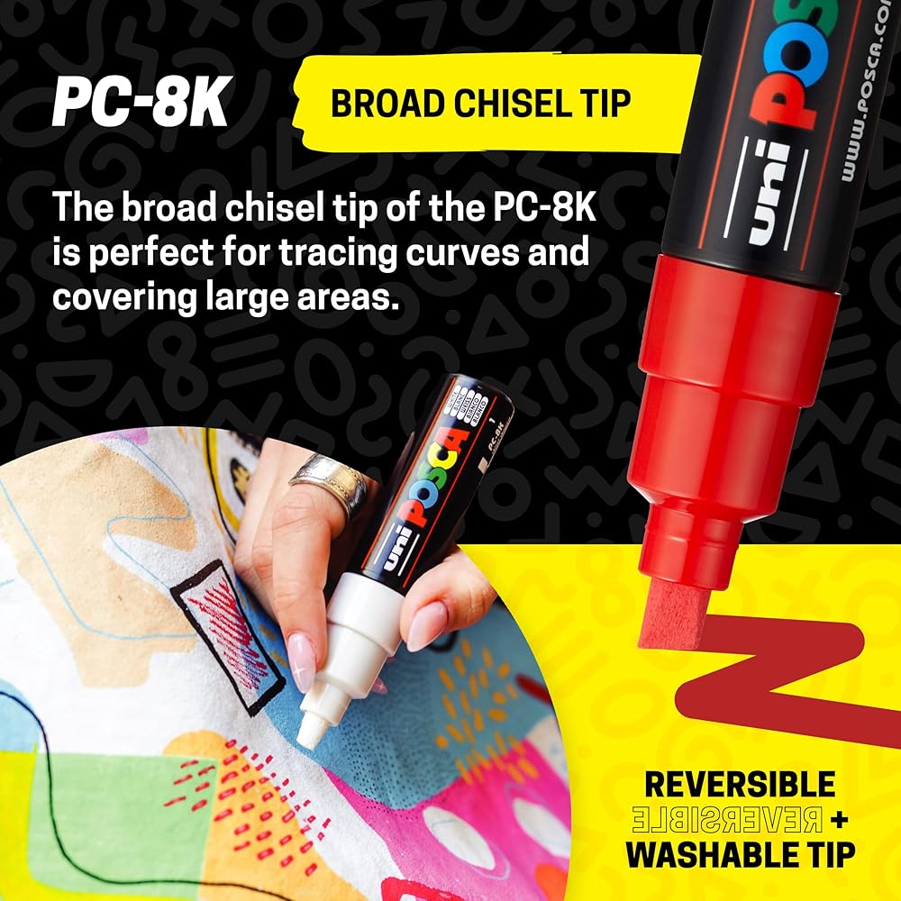 Uni-Ball POSCA MARKER PC-8K Great Set of 8 Pens "The Best & Most Popular Colours" SET CONTAINS 8 GREAT COLOURS: BLACK, WHITE, PINK, RED, YELLOW, GREEN, BLUE, LIGHT BLUE