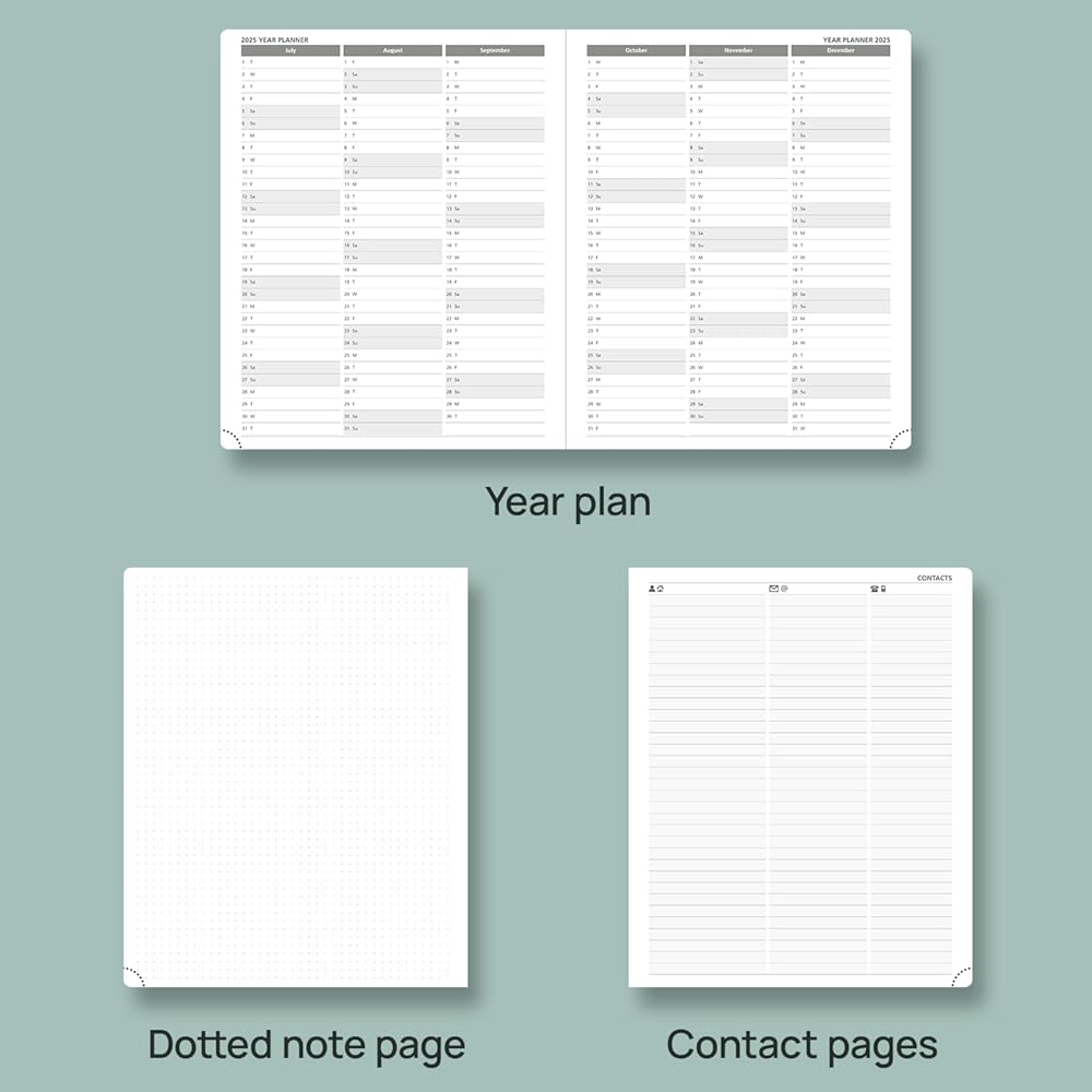 صفحات وظائف إضافية: يحتوي هذا المخطط الأسبوعي لعام 2025 أيضًا على صفحة "عطلة وتقويم 2025-2026" + صفحة "مخطط عام 2025-2026" + صفحة النفقات الشهرية + صفحة "عيد الميلاد والتاريخ المهم" + 6 صفحات ملاحظات منقطة + صفحات جهات الاتصال وكلمات المرور، توفير مساحة لتسجيل المعلومات الهامة وتعزيز التنظيم.