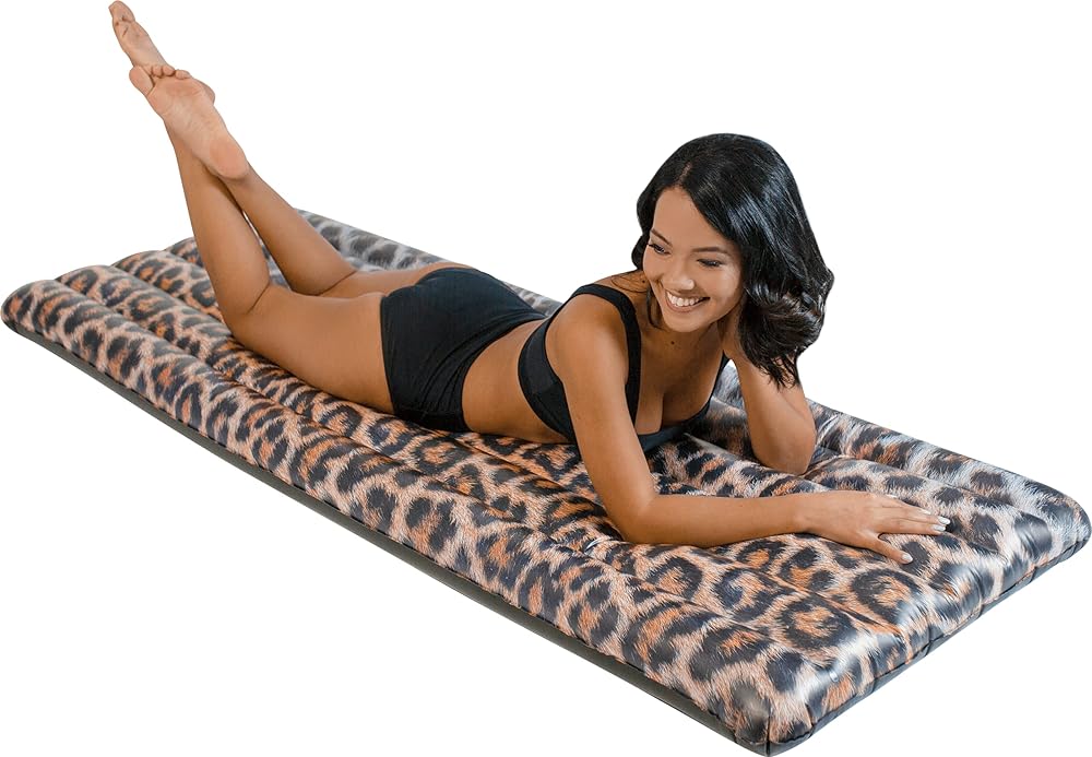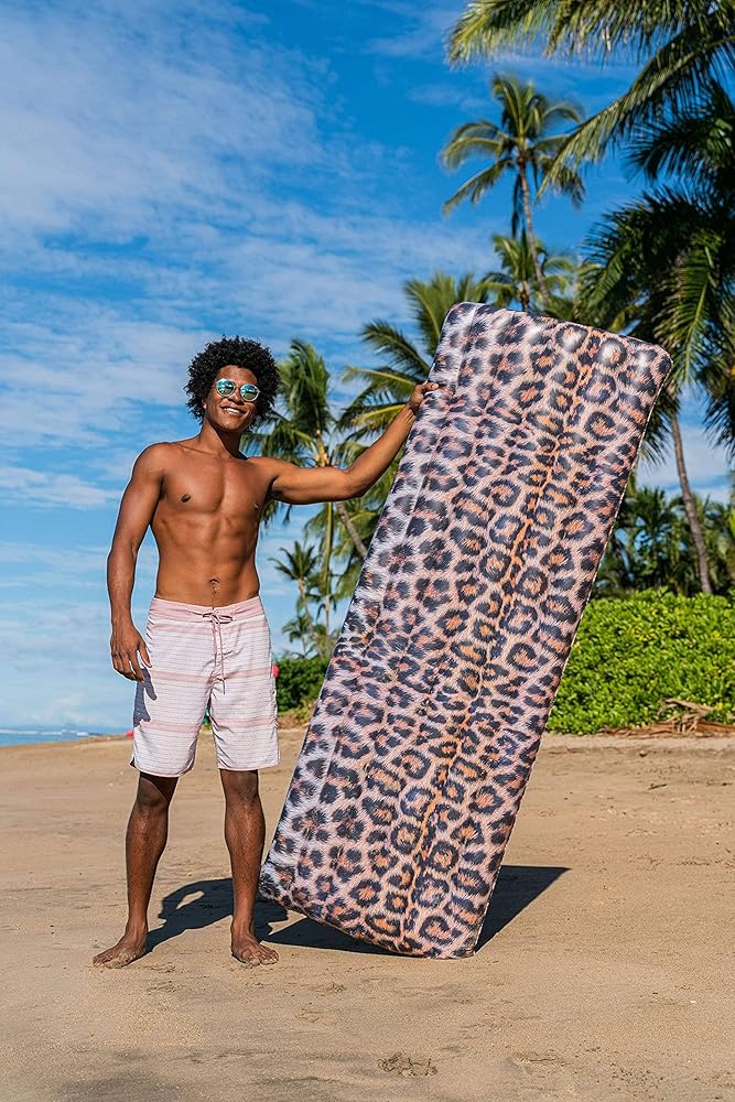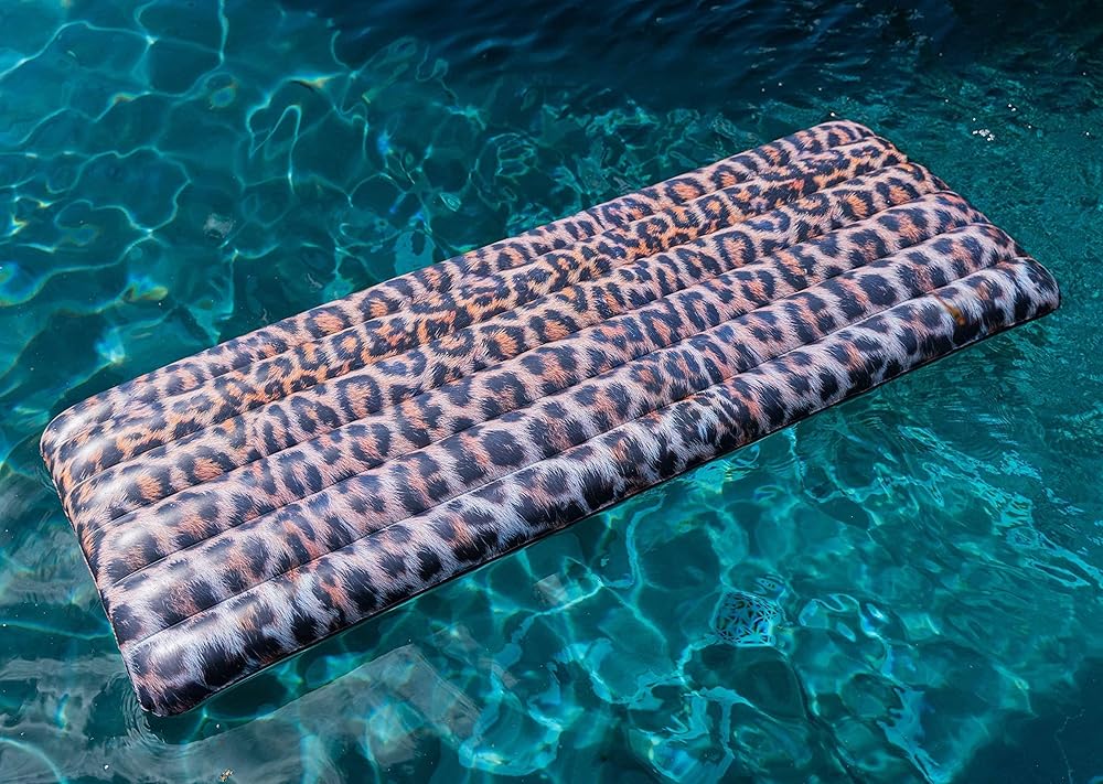 PoolCandy Safari Collection Deluxe Leopard Print Pool Raft مقاس 74 بوصة - تقنية RealPrint للصور عالية الدقة