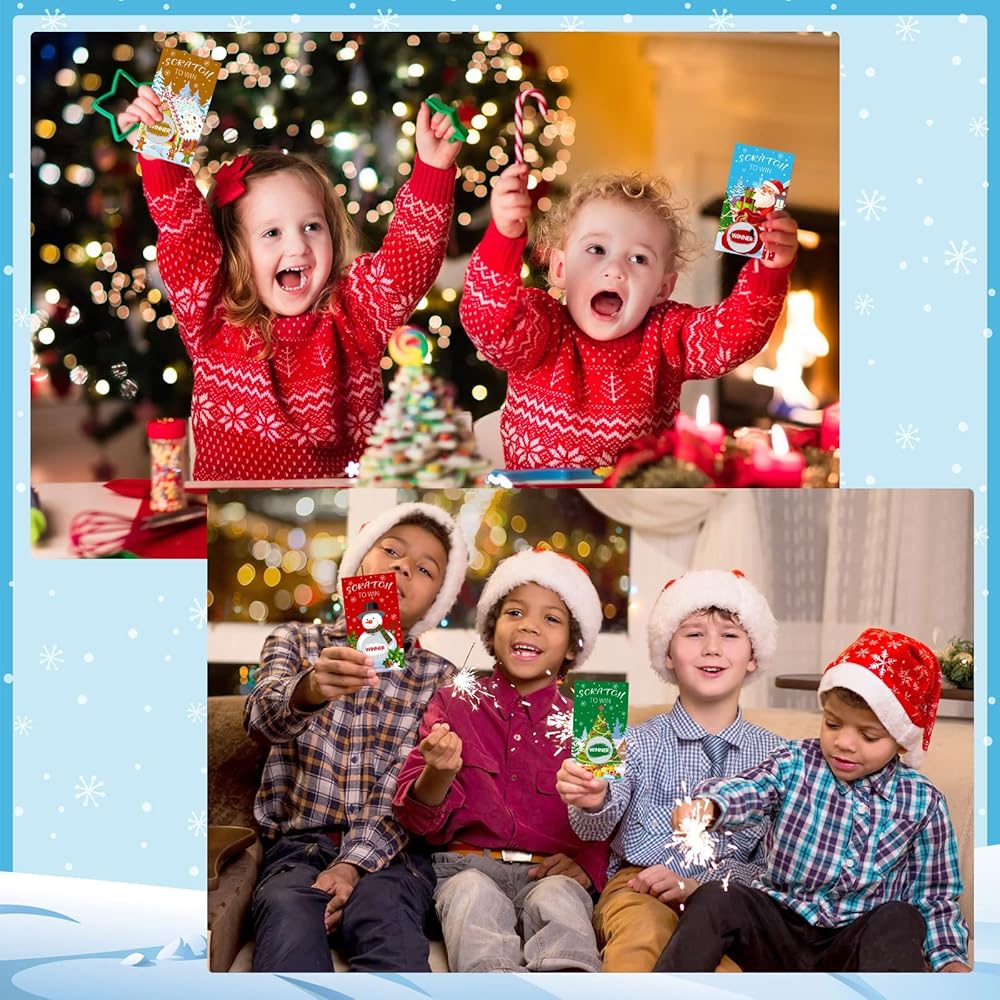 • نمط موضوع عيد الميلاد: تم تصميم بطاقات الخدش هذه مع سانتا كلوز وندفات الثلج وأشجار الكريسماس ورجل الثلج وخبز الزنجبيل، والتي تتوافق مع موضوع العطلة، مما يخلق جوًا أكثر لعيد الميلاد لحفلتك