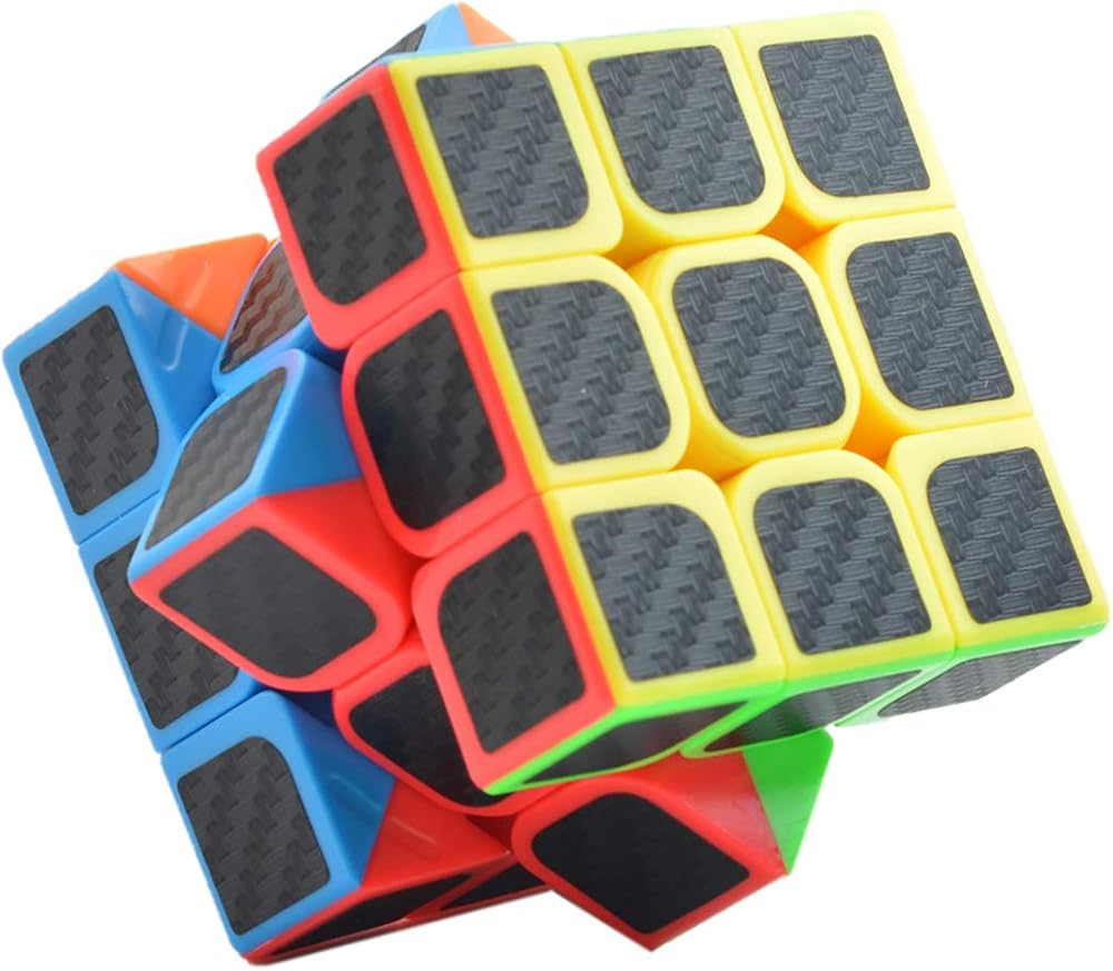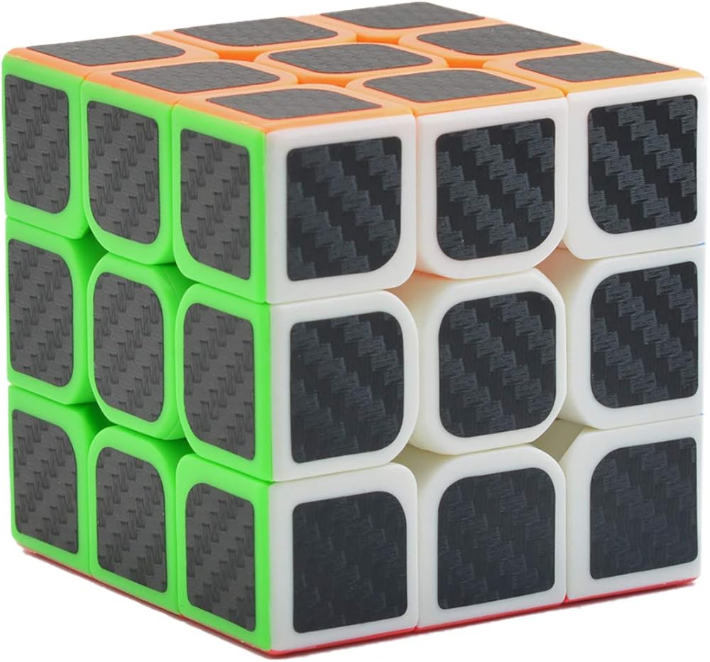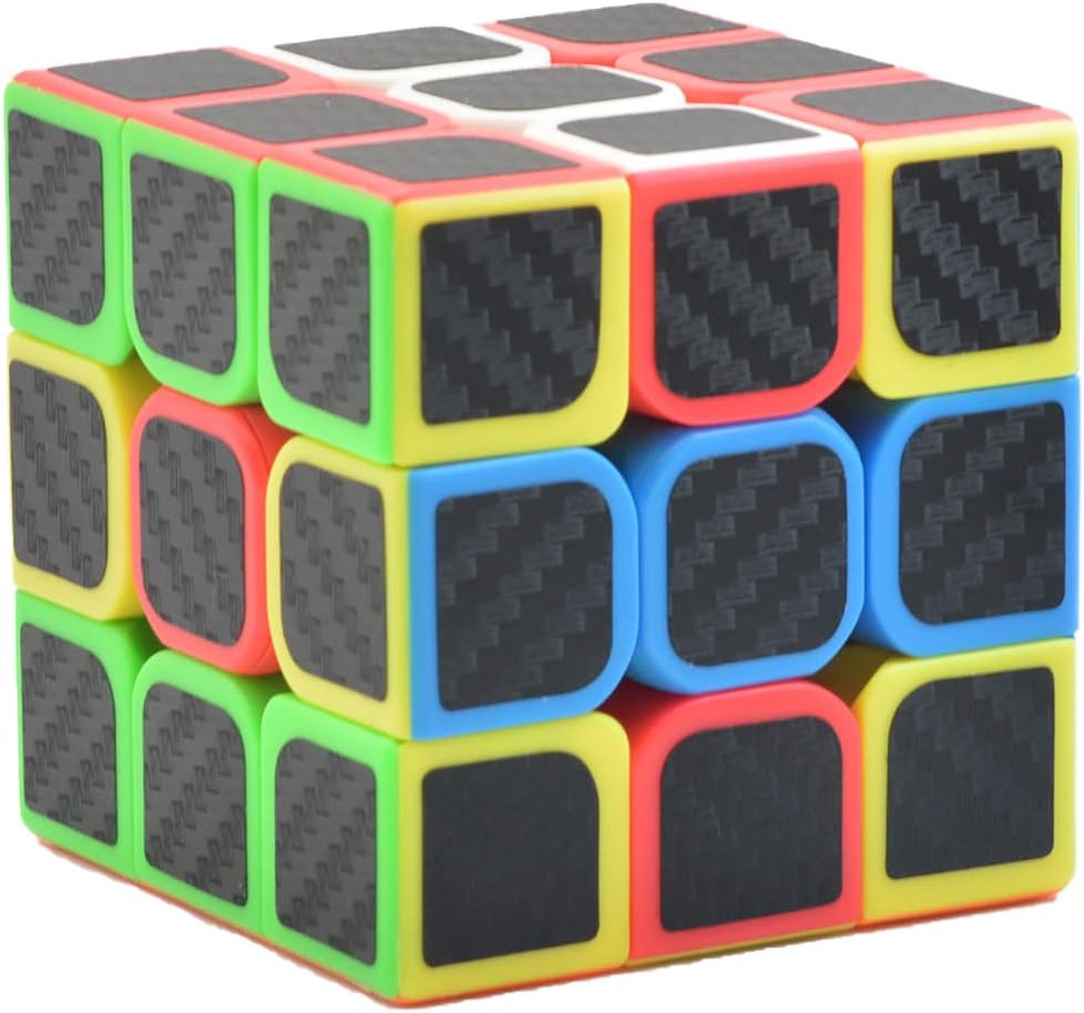 • Textured Carbon Fiber Sticker Cube Puzzles: this 3x3x3 Carbon Fiber Sticker Speed Smooth Magic Cube Puzzle has colored centers, edges and squares that are covered with textured carbon fiber stickers. The color of each square peeks out around the edge of the black sticker