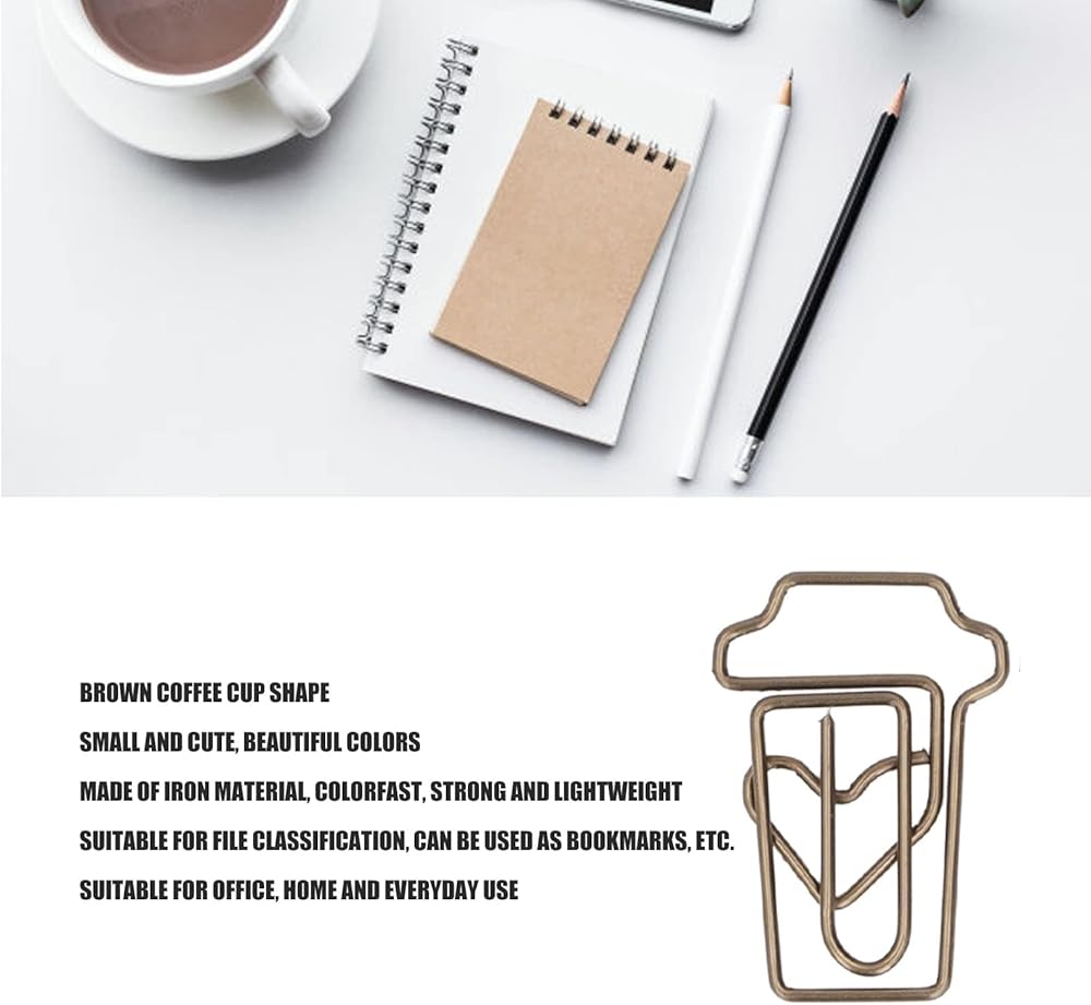 مظهر لطيف: مشابك ورقية لطيفة، مشابك ورقية مصنوعة على شكل أكواب قهوة بنية، صناعة متقنة، لطيفة وصغيرة الحجم، مما يسمح لك بإكمال عملك بطريقة ممتعة. مشابك الورق لن تلحق الضرر بالورق