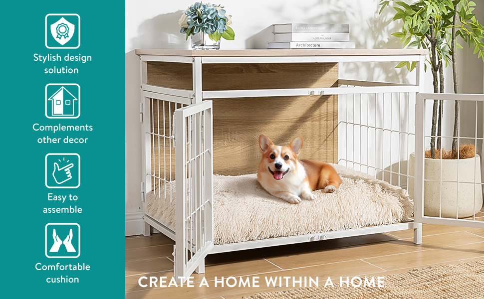 تصميم أثاث متعدد الوظائف: يمكن استخدام قفص الأثاث للكلاب هذا بذكاء كطاولة، مما يوفر حلاً سريًا وأنيقًا لإيواء حيوانك الأليف عند الحاجة، ويمتزج بسلاسة مع ديكور منزلك.
