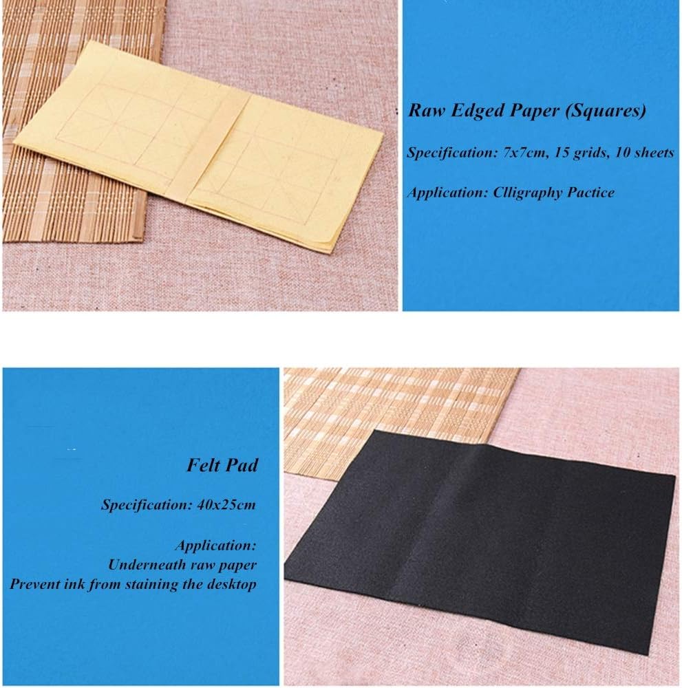• ✍ لباد مفيد: يتم وضع اللباد أسفل الورقة، مما يمكن أن يمنع تلوث الحبر على سطح المكتب. وفي الوقت نفسه، سيحتفظ اللباد بالورق ويجعل الكتابة أكثر ملاءمة، كما أنه مناسب أيضًا للخطاط المتقدم.