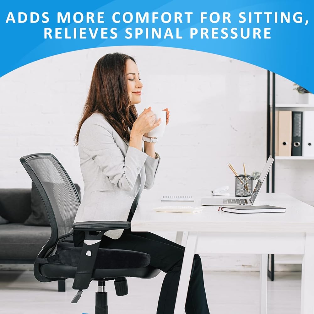وسادة مقعد جيدة لك، قل وداعًا للكرسي غير المريح: مصنوعة من إسفنج ذو ذاكرة عالي الكثافة وبطيء الارتداد، ناعمة ولكن ثابتة، تستخدم وسائد المقعد الخاصة بنا لكراسي المكتب حرارة جسمك للتكيف مع منحنيات جسمك، مما يمنحك الدعم لمكتبك الحالي يفتقر الكرسي.
