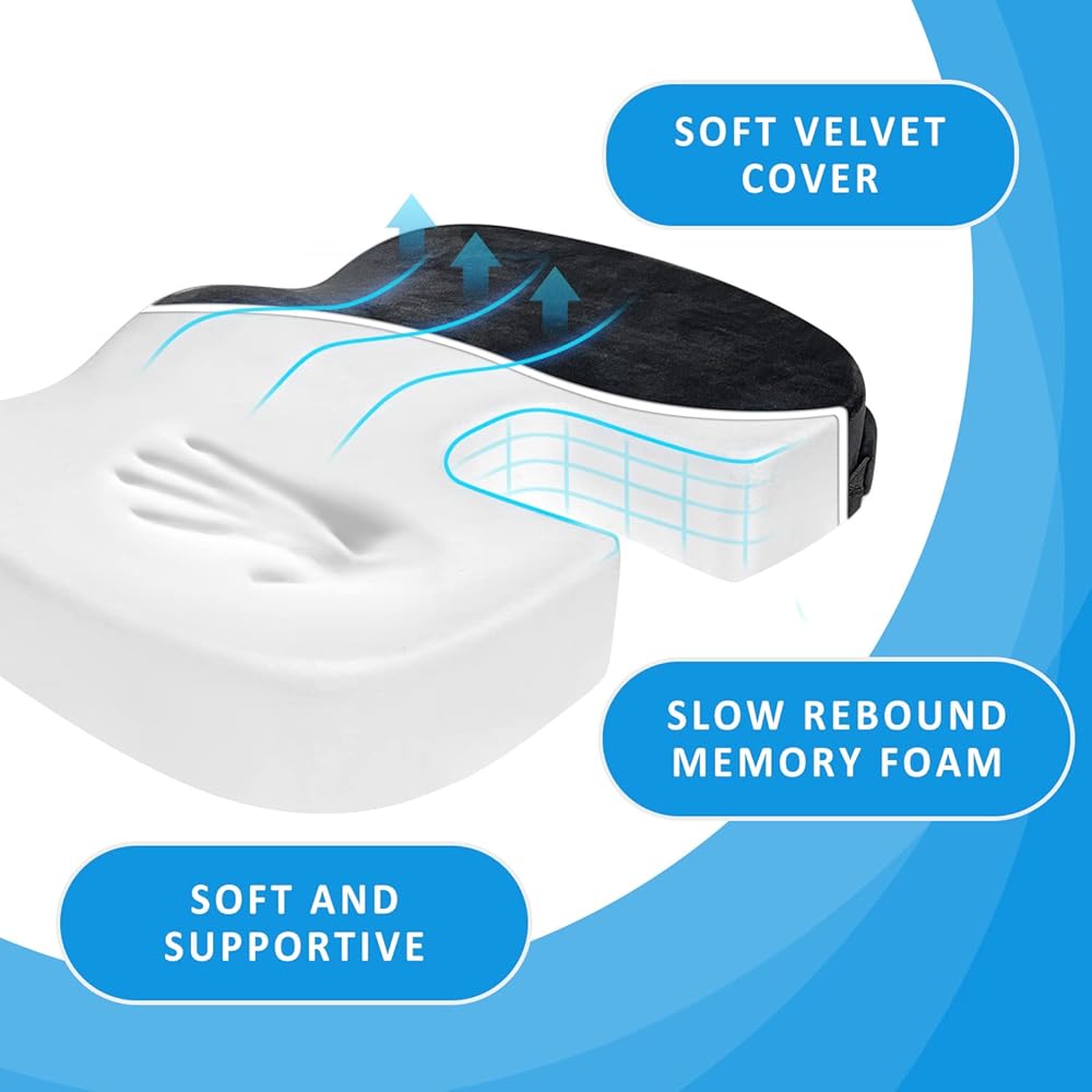 وسائد كرسي العصعص لتخفيف آلام العصعص: مصممة بمحيط على شكل حرف U، وسائد وسائد كرسي المكتب الخاصة بنا تعلق العصعص فوق أسطح الجلوس الصلبة وتتجنب ملامسة الأسطح الصلبة، مما يقلل الضغط من العصعص ويريح عظمة العصعص.
