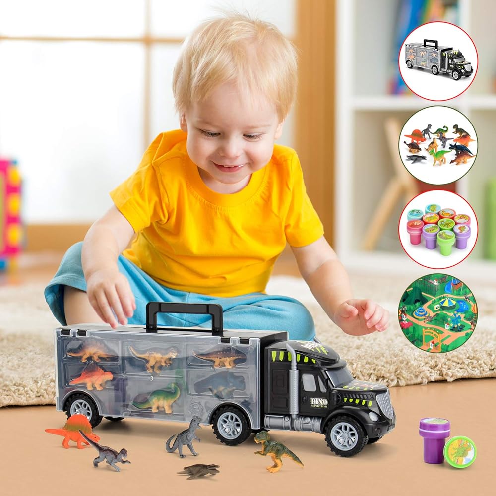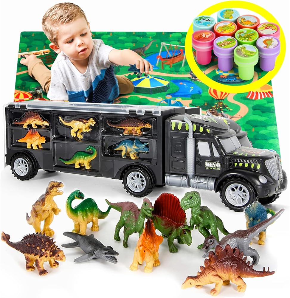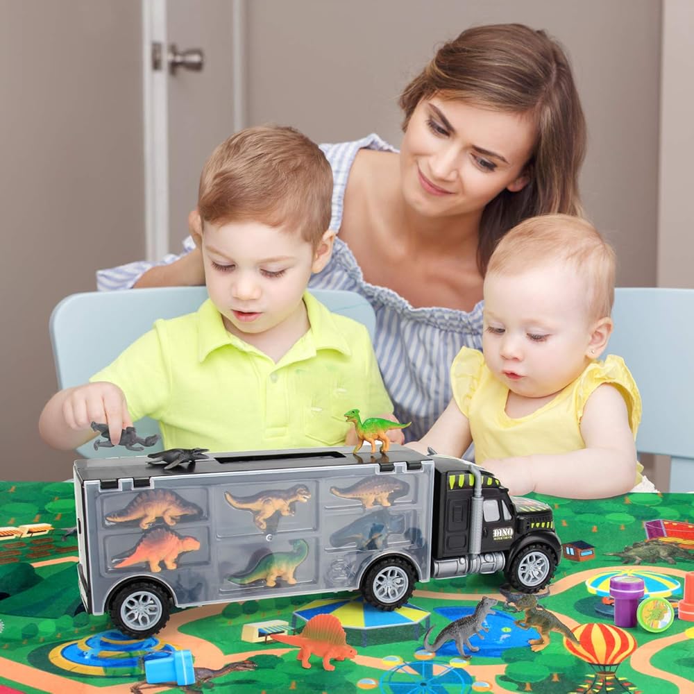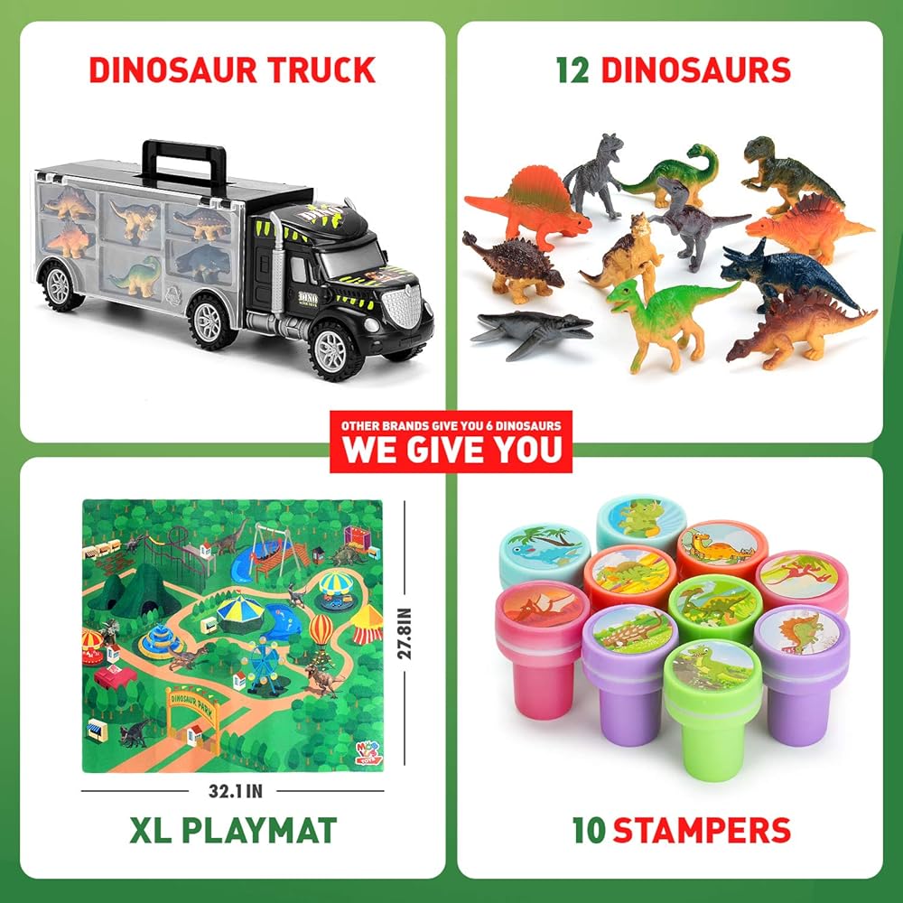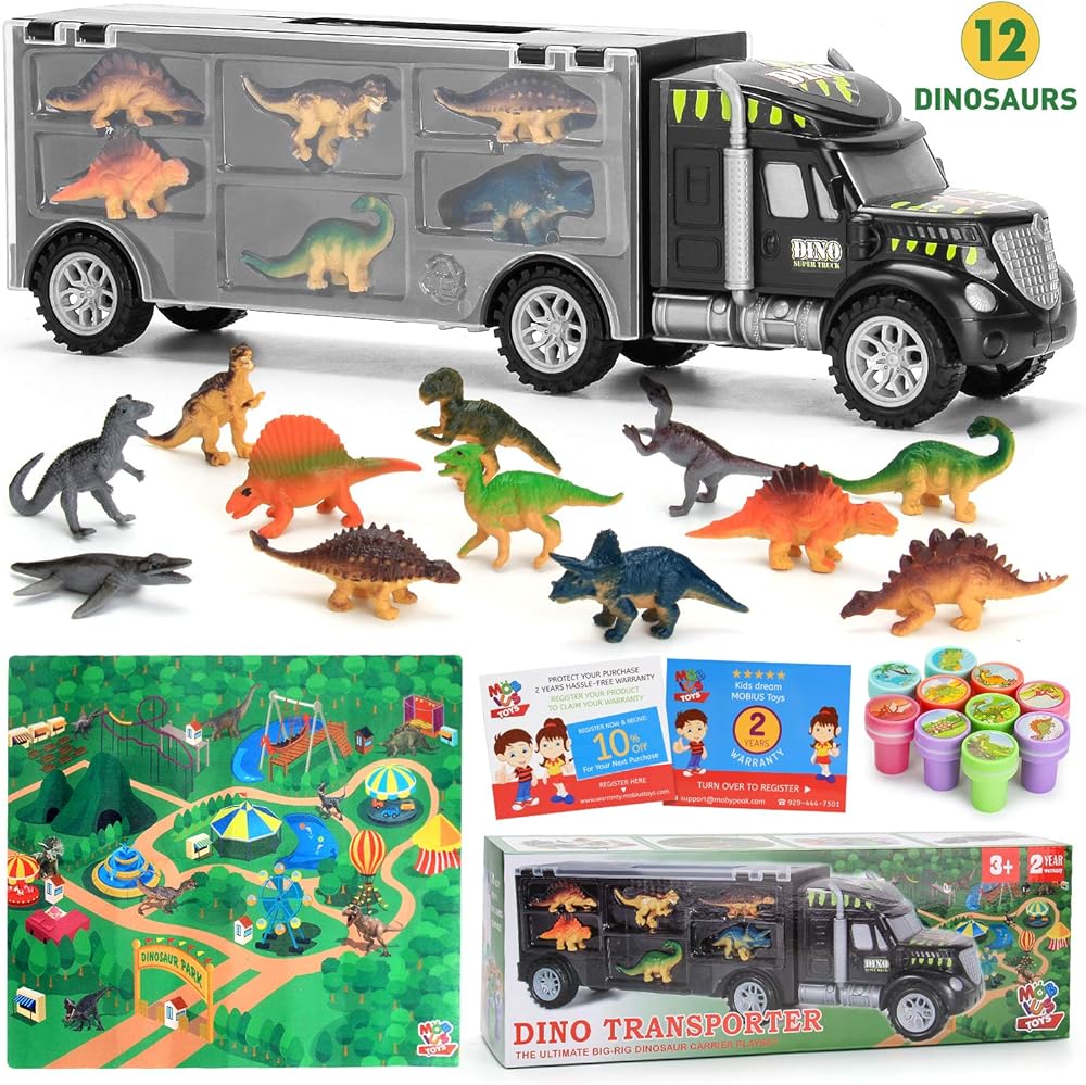 حاملة شاحنة الديناصورات من موبيوس تويز - مجموعة لعب الديناصورات مع 12 لعبة ديناصورات - مجموعة ألعاب الديناصورات العالمية مع بساط لعب مقاس XL للأطفال الصغار الأولاد والبنات لأعمار 3 و4 و5 و6 و7 سنوات