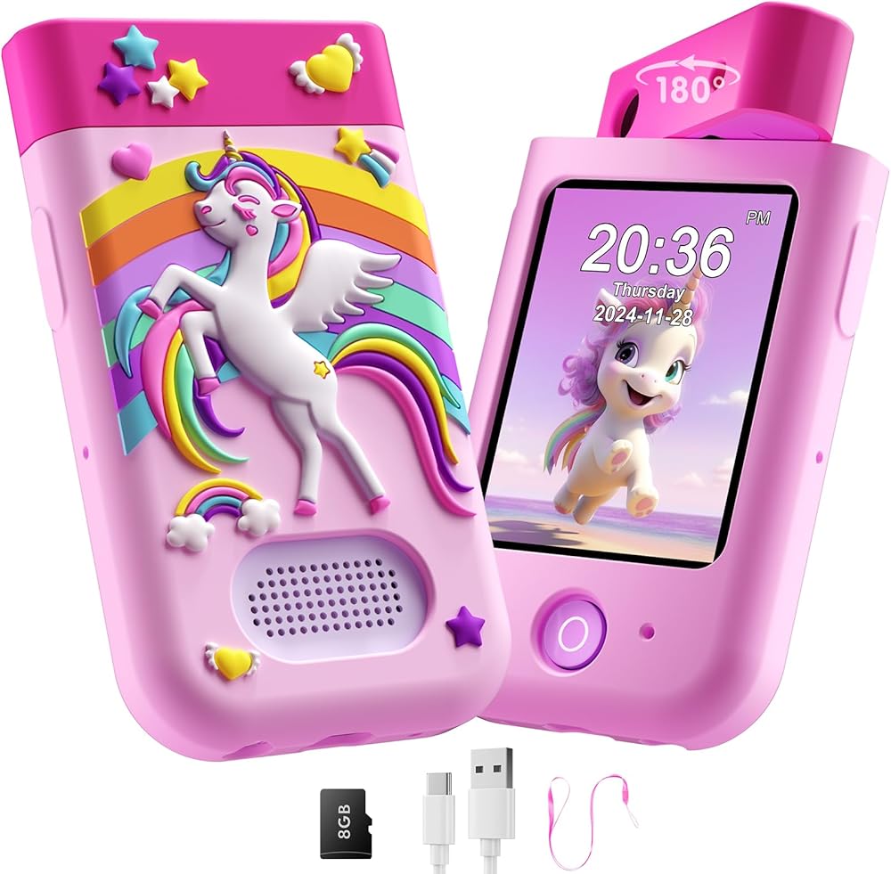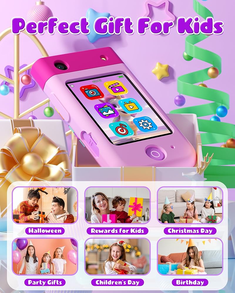 لعبة هاتف ذكي للأطفال للفتيات، هدية عيد ميلاد للفتيات من سن 3 إلى 10 سنوات، هاتف لعب للأطفال الصغار بشاشة لمس مع كاميرا دوارة، لعبة تعليمية، مشغل موسيقى