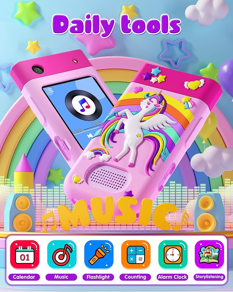 • 【هدايا رائعة للفتيات】يأتي هاتف اللعبة بتصميم لطيف وحافظة من السيليكون ذات السطح المرتفع وحبل للهاتف الخلوي، مقاوم للسقوط ومتين وسهل الحمل. معبأة بشكل جميل، مثالية كهدية مثالية للفتيات في سن 3 4 5 6 7 8 9 10 سنوات في أعياد ميلادهن أو الكريسماس أو غيرها من المهرجانات.