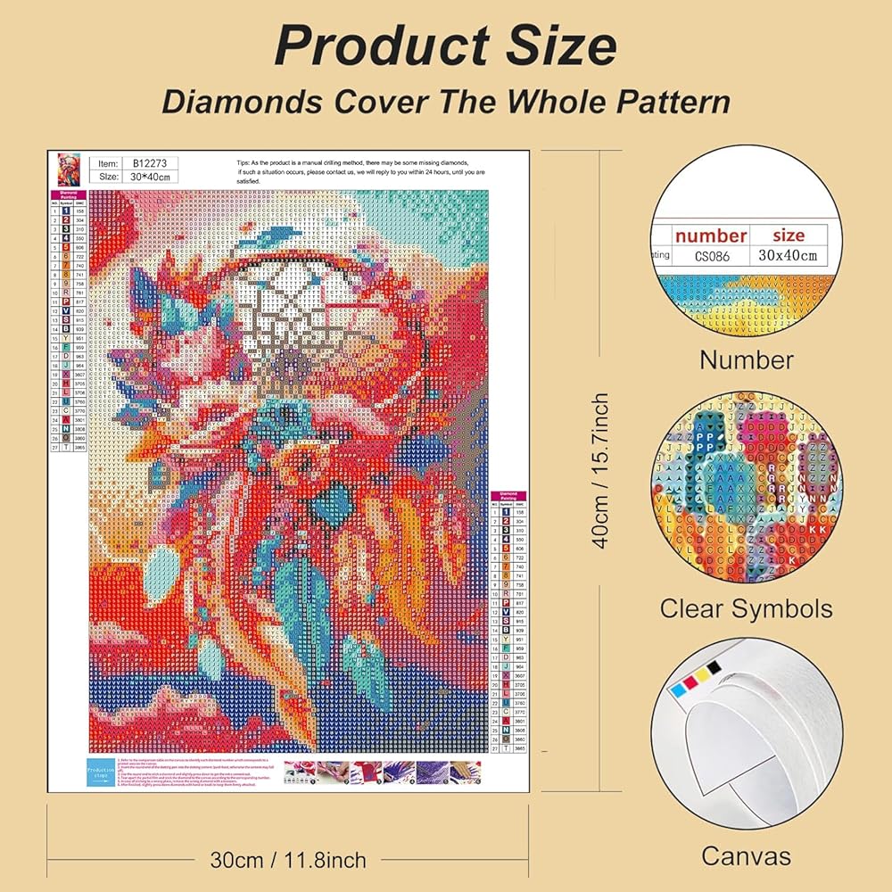 • تتضمن مجموعات Dream Catcher Diamond Art Kits ما يلي: مجموعات الرسم الماسي للبالغين، مقاس القماش 12 × 16 بوصة (30 × 40 سم) كبير بما يكفي لإظهار تفاصيل الصورة. الماس اللامع عالي الجودة في مجموعاتنا الفنية الماسية متناسق من حيث الحجم والشكل. لون الماس لن يبهت أبدًا. فن الماس النهائي أكثر تألقًا وحيوية. تتضمن اللوحة المنقطة للرسم الماسي ألماسًا مرمزًا بالألوان، وقلمًا فنيًا ماسيًا، وشمعًا، وصينية، وقماشًا.