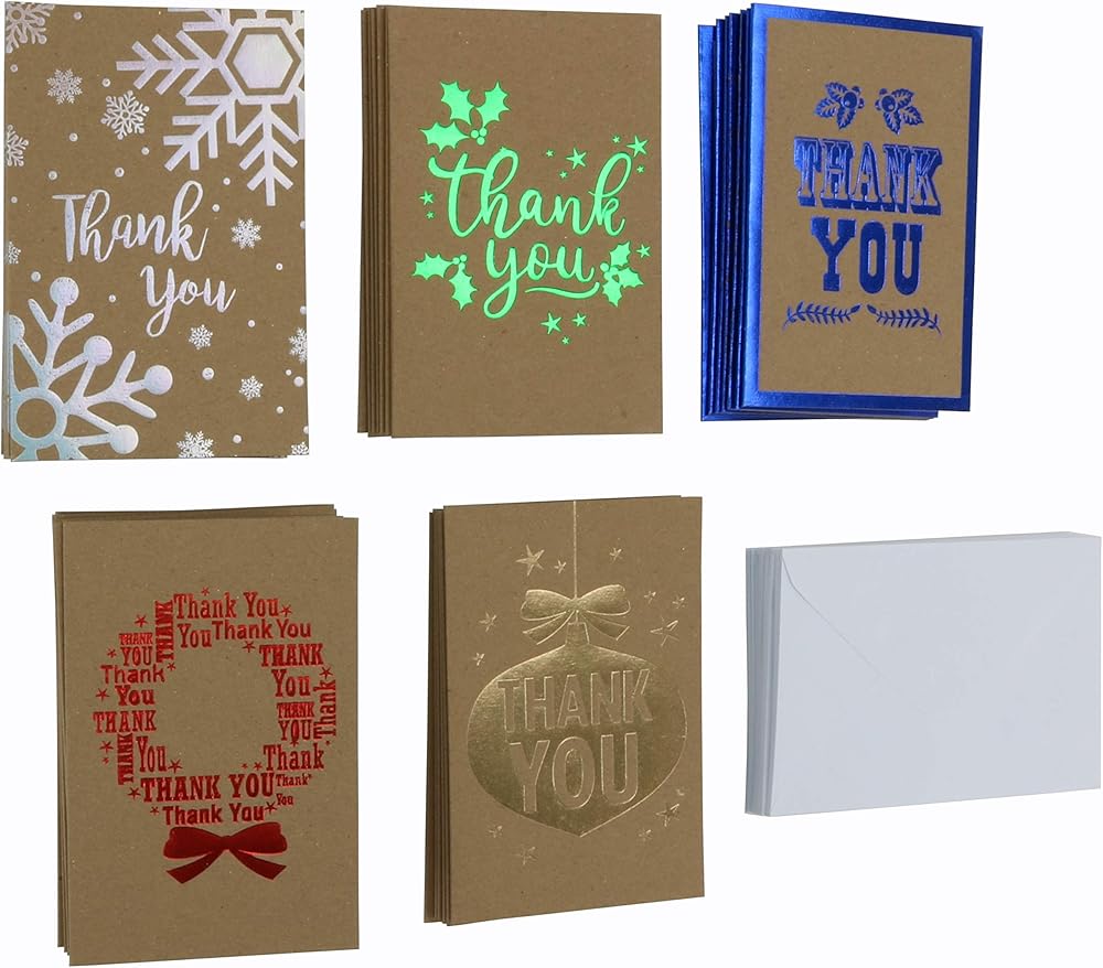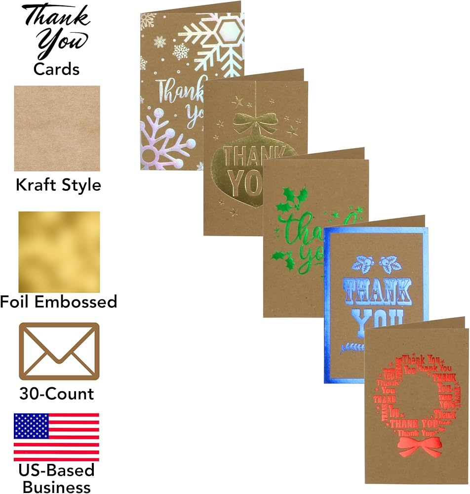 - عبر عن امتنانك في موسم الأعياد هذا باستخدام بطاقات الشكر المدروسة والمزينة برقائق معدنية والمغلفة