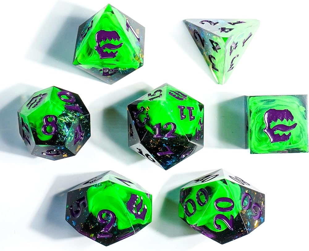 🎲 Stand Out with Unique Colors & Styles: Dive into a range of mysterious red dice, golden dice, green dice, blue dice, and even bone dice. Our collection includes unique dnd dice bulk like liquid core dice, sharp edge dice, cheese dice, and d100 dice, which ensures that you'll have the perfect set for any RPG.