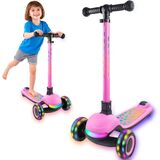 【أضواء مزامنة LED تفاعلية】يتميز السكوتر المضيء بمصابيح LED نابضة بالحياة تتزامن وتضيء في وقت واحد على المصباح الأمامي والساق وسطح البولكا العريض، مما يخلق عرضًا مبهرًا للألوان التي تجذب انتباه الأطفال وتعزز تجربة الركوب الخاصة بهم، خاصة في الأماكن المنخفضة. -ظروف الإضاءة. بالإضافة إلى ذلك، تضيف العجلات الوامضة الأمامية والخلفية طبقة إضافية من الإثارة.
