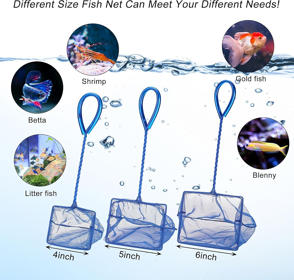 【الأبعاد】شبكة السمك المربعة لحوض السمك يبلغ مقاسها تقريبًا. 6 × 5 بوصة، مع جيب عميق 5.5 بوصة، طول المقبض 11 بوصة.