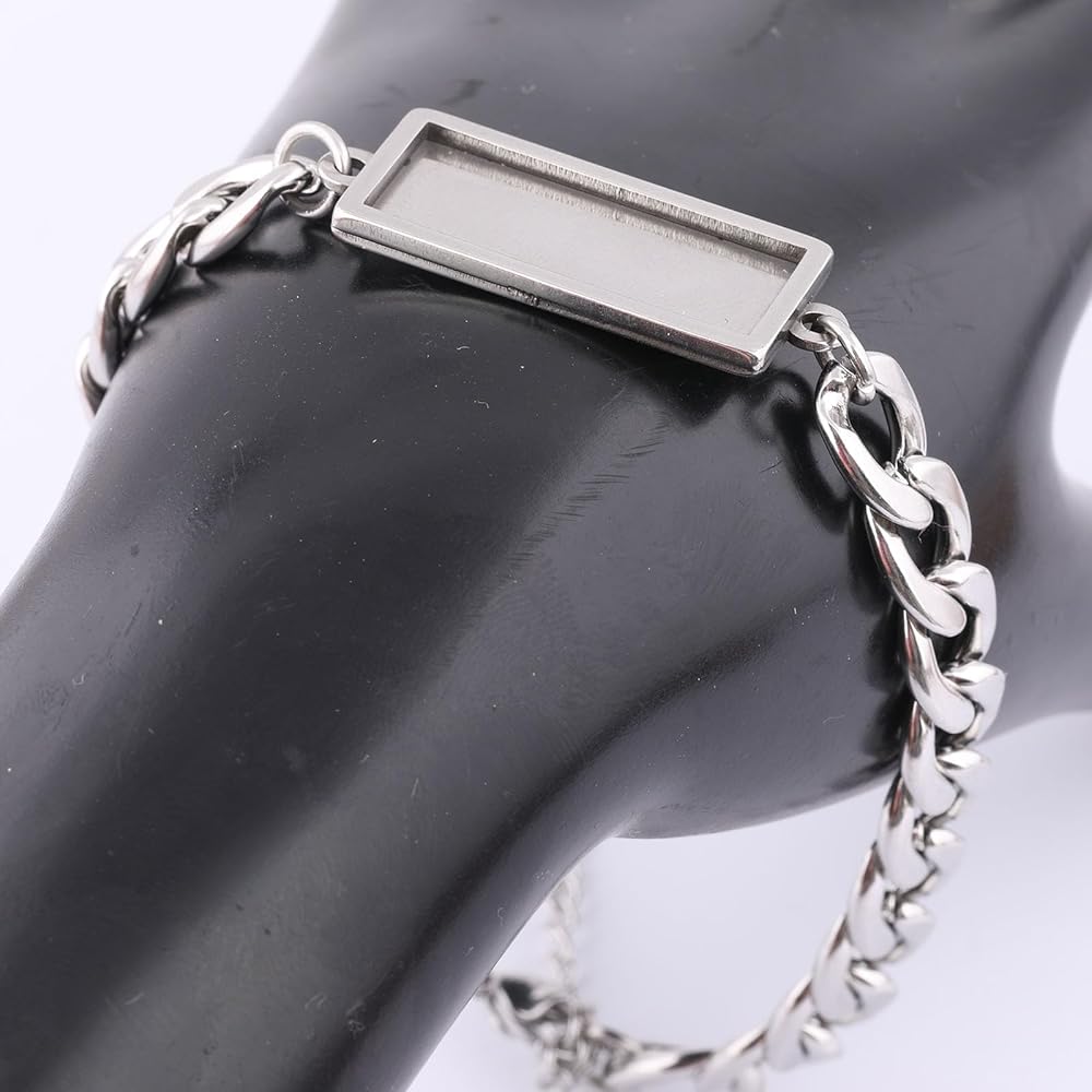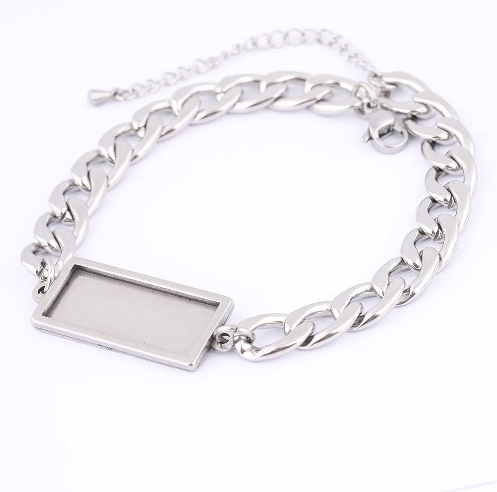 5pcs stainless steel 20mm cabochon bracelet setting trays diy chain bracelets bezel blanks for jewelry making supplies