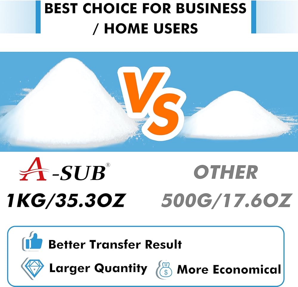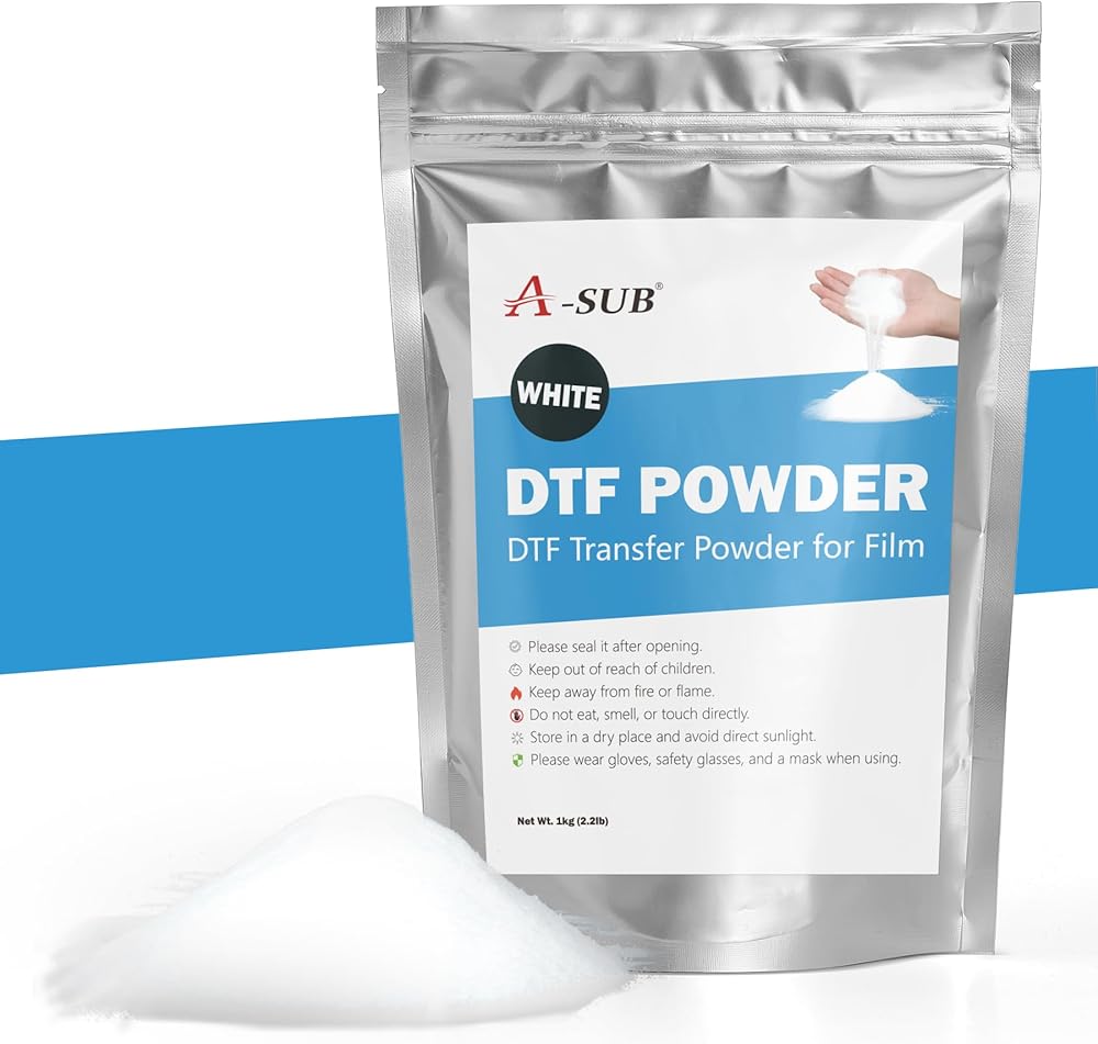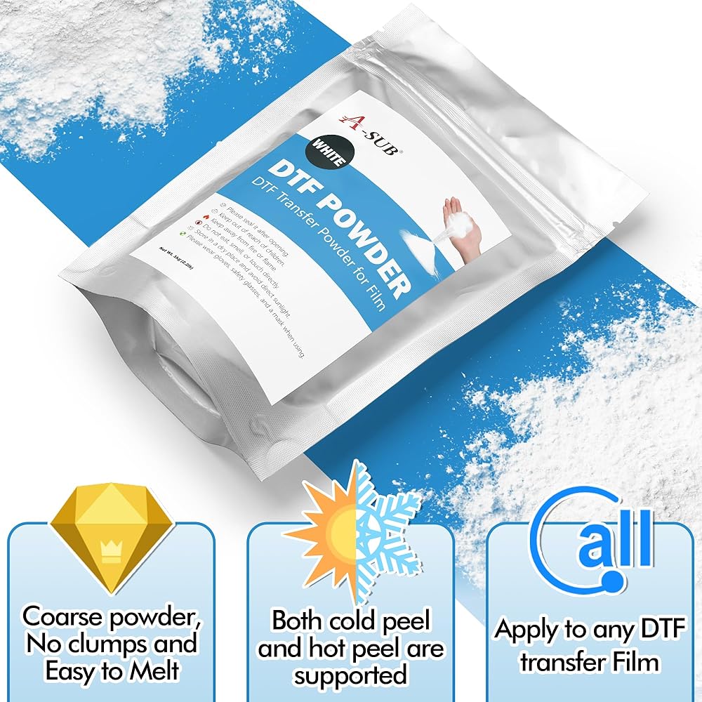 مسحوق A-SUB DTF، مسحوق نقل DTF أبيض خشن 35.3 أونصة، مسحوق DTF لاصق بالذوبان الساخن للتسامي، يعمل مع فيلم نقل DTF وطابعة DTF للمطبوعات الرقمية على أي لون أو مادة قماش
