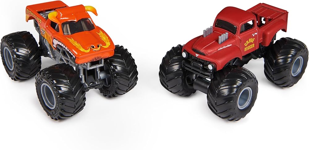 HEAD-TO-HEAD ACTION: Put on an awesome Monster Jam show with the 2-Pack! Each set comes with 2 iconic Monster Jam monster trucks, including Grave Digger vs. Avenger, Max-D vs. Son-uva Digger and more!