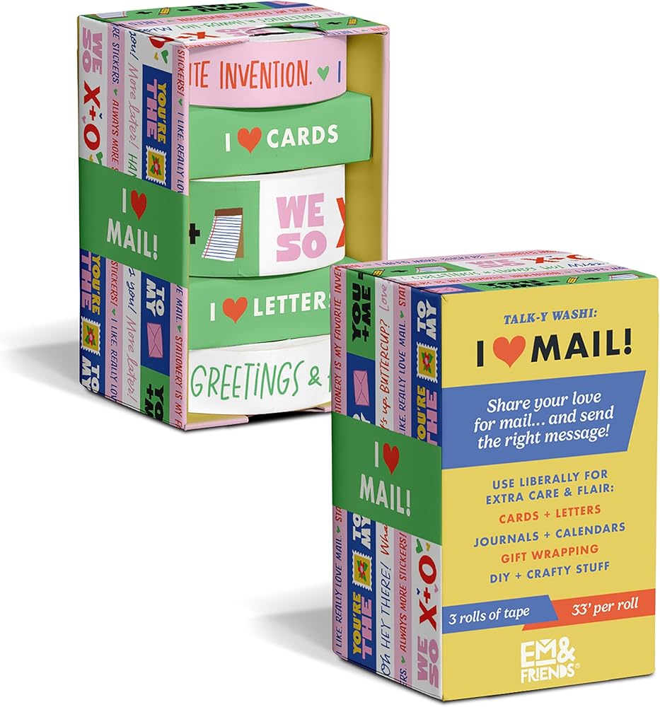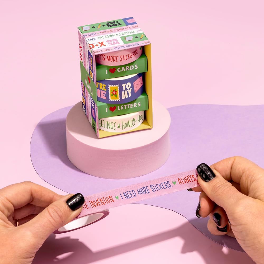 Fun and funny decorative washi tape for stationery lovers that celebrates snail mail (and cuteness) from greeting cards maker Em & Friends!