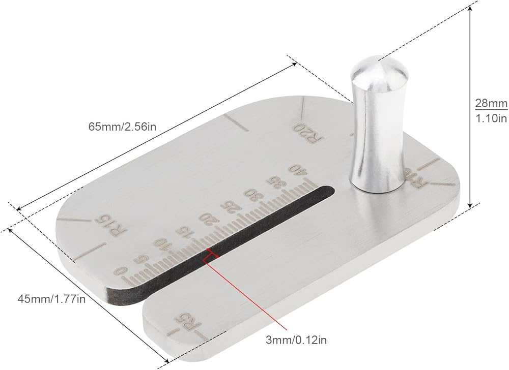 Parameter Information: Material: Stainless Steel Measuring Range: 0-40mm Accuracy: 1mm Product Description: Product Name: Pulling Hole Punch Tool Features: - The leather stitching punch aid pulling plate is made of stainless steel material, which is strength and durability. - There are stitch measures marked beside the slot on both sides of the leather pulling aid, and the removable screw can be installed on both sides. The aid plate can be used as a round corner stitching ruler too. - When you need to pull up the lacing chisel from leather, please surround the chisel with the slot of the leather stitching punch aid plate, which can prevent the leather from being pulled and deformed. - The slot width is 3mm, which can be applied to most pricking iron or lacing chisels. - How to use: Place the leather chisel into the slot and tighten the screw to secure it in place. Once secured place the tool on the leather to be perforated and press down gently. You can then continue stitching the leather and only move the punching aid to the next hole once the stitching is complete. Material: Stainless Steel Place of Application: Suitable for most leather chisels. Product Weight : 84 G / 2.96 Ounces Product Dimensions (L*W*H) : 65*45*23 MM / 2.56*1.77*0.91 Inches Package Weight : 85.0 G / 3.00 Ounces Package Dimensions (L*W*H) : 68*46*25 MM / 2.68*1.81*0.98 Inches Retail Packaging: Yes, Plastic Packaging Package Include: 1 x Leather Stitching Punch Aid Plate