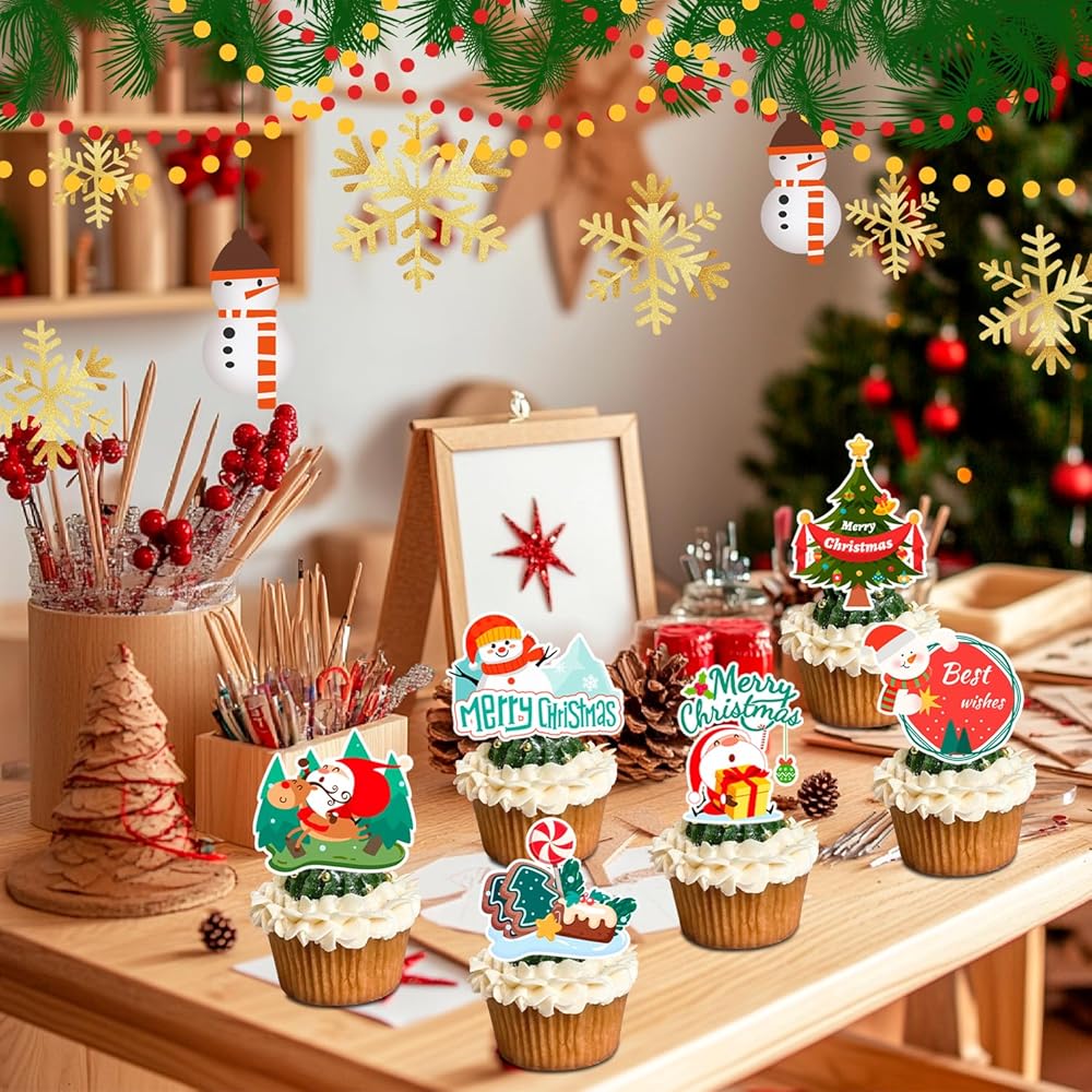 • جديدة ولطيفة: تم تصميم أغطية كب كيك حفلات الكريسماس هذه مع العديد من عناصر الكريسماس الكلاسيكية، مثل سانتا كلوز، وشجرة الكريسماس، والهدايا، ورجل الثلج، والأيائل، وما إلى ذلك، والتي لا تجعل الكعك الخاص بك أكثر جاذبية فحسب، بل تجلب المزيد من المرح. إلى حفلة عيد الميلاد الخاصة بك.