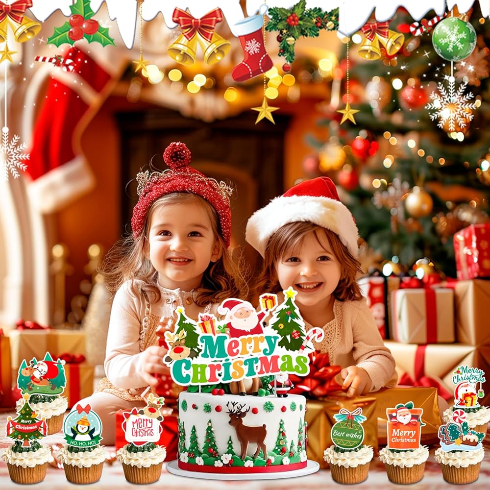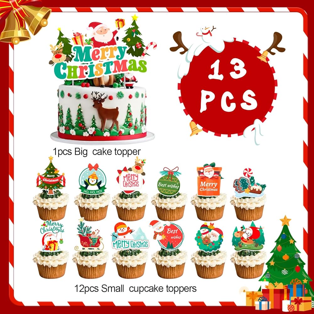 أعلى كعكة عيد الميلاد، 13 قطعة مجموعة زينة كعكة عيد الميلاد، 12 قطعة من أغطية كب كيك عيد الميلاد، أغطية كعكة عيد الميلاد، قطعة واحدة من أغطية كعكة عيد الميلاد لمستلزمات زينة حفلات عيد الميلاد