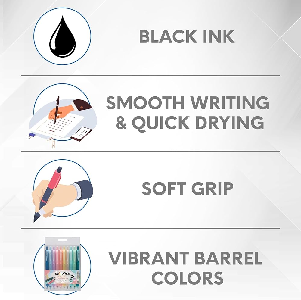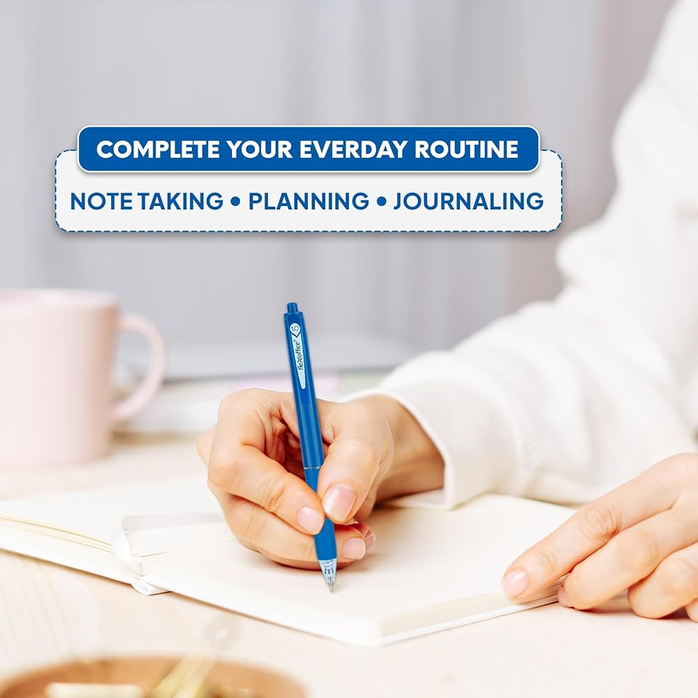 أقلام كتابة ناعمة مقاس 0.7 مم: يمنع الحبر سريع الجفاف وغير القابل للتلطيخ النزيف أو التلطيخ، مما يجعله مثاليًا لمستخدمي اليد اليسرى. علاوة على ذلك، توفر النقطة الدقيقة خطوطًا واضحة ودقيقة لتدوين الملاحظات والتلوين وكتابة اليوميات.