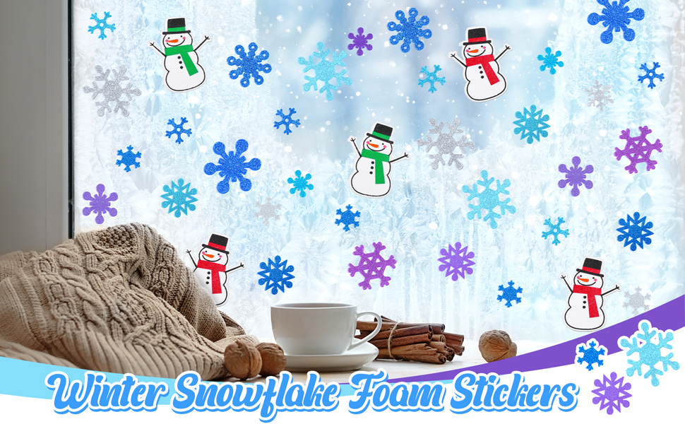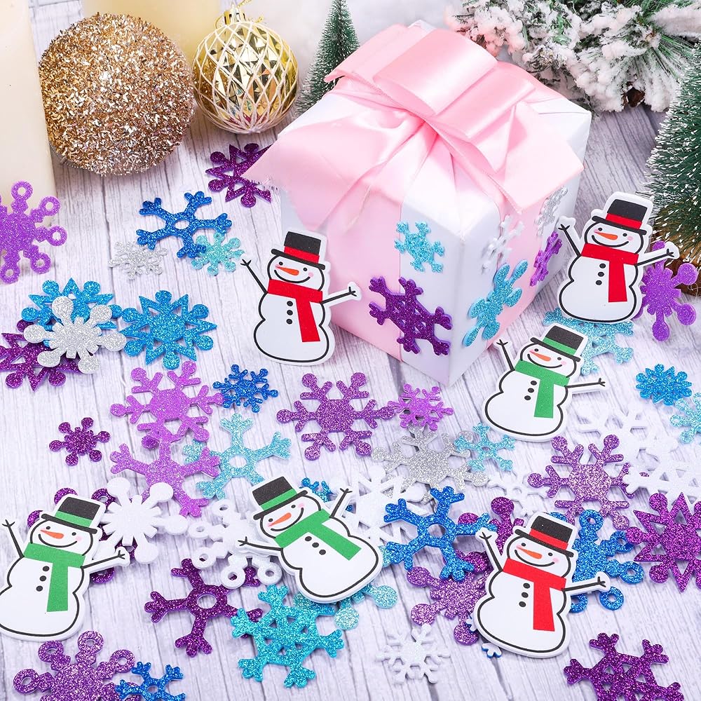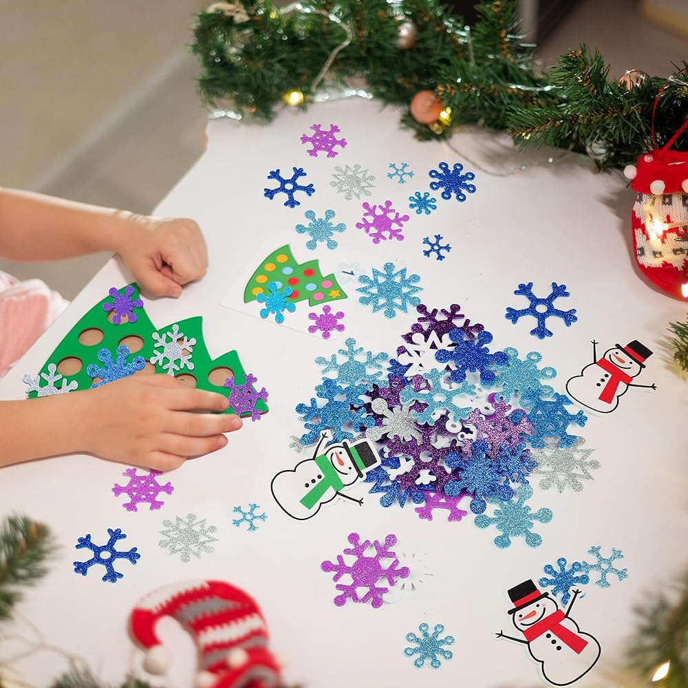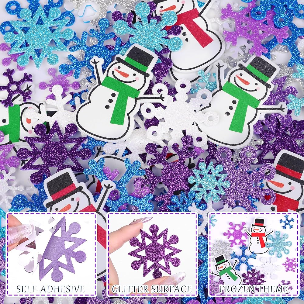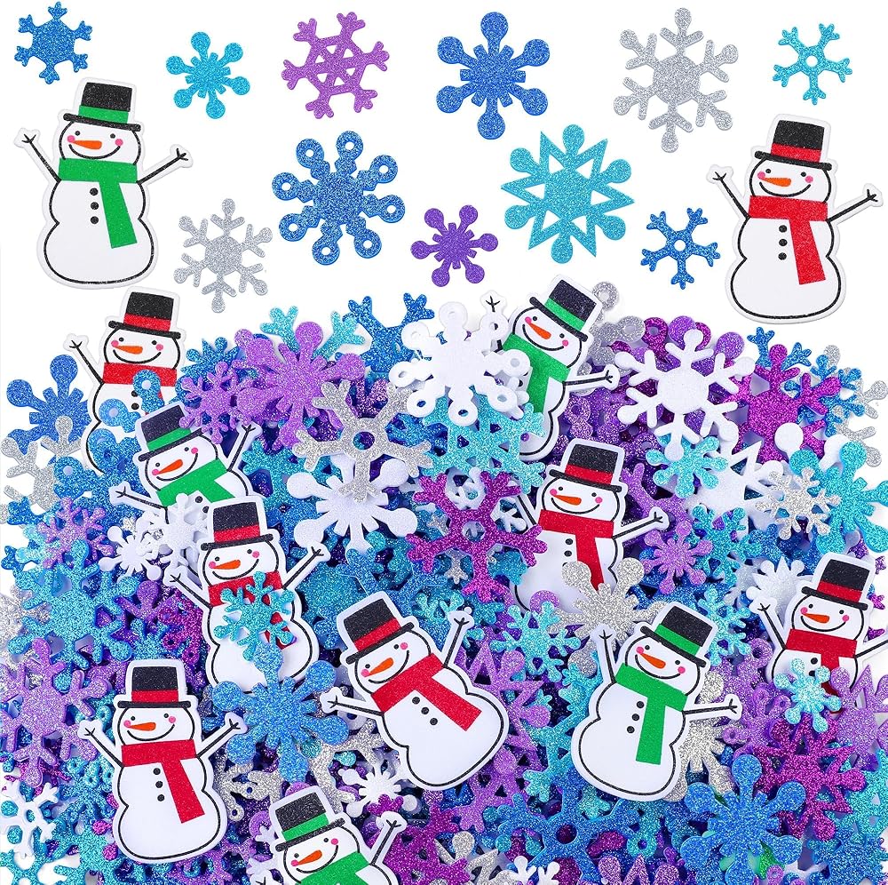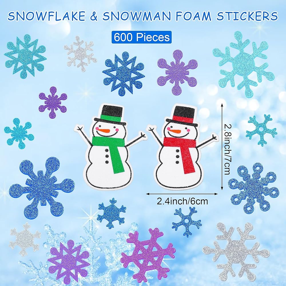 Aodaer 600 قطعة من ملصقات رغوة ندفة الثلج اللامعة لتزيين عيد الميلاد ذاتية اللصق لرجل ثلج الشتاء ملصقات DIY للمشاريع الحرفية لصنع البطاقات لتزيين حفلات عيد الميلاد