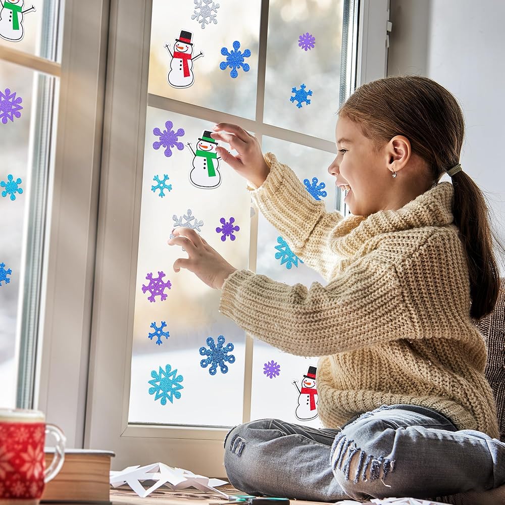 سهلة الاستخدام: تتميز كل من الملصقات الملصقة على شكل ندفة الثلج ورجل الثلج بتصميم ذاتي اللصق، مما يجعلها سهلة الاستخدام بشكل لا يصدق؛ لا حاجة إلى صمغ أو أدوات أخرى، ما عليك سوى تقشير الورقة الخلفية ولصق الملصق على السطح المطلوب