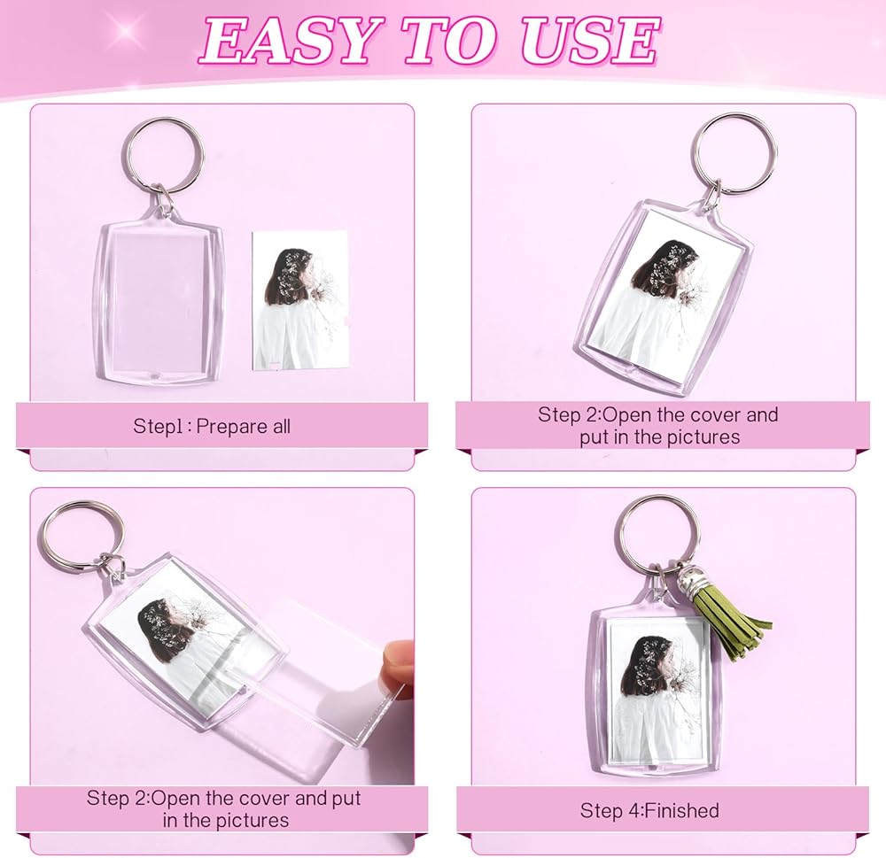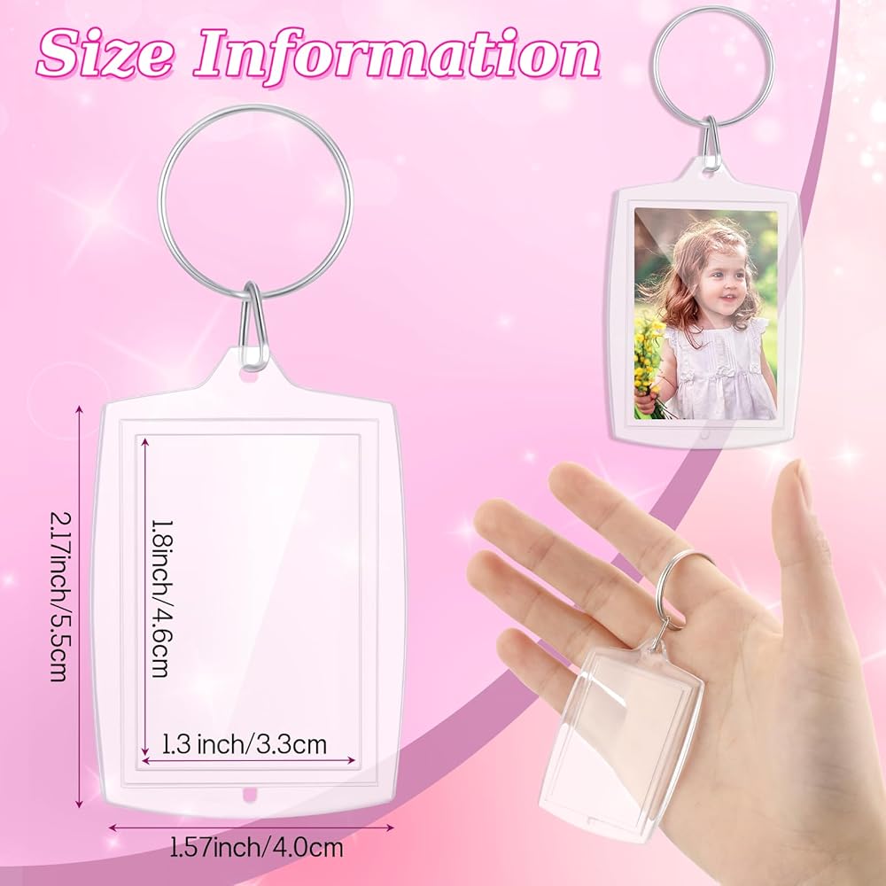 Both Sides Can Be Seen: this photo keychain is transparent, so you can put 2 pieces of different pictures in it to show different pictures on the front side and back side, also give them away as meaningful presents