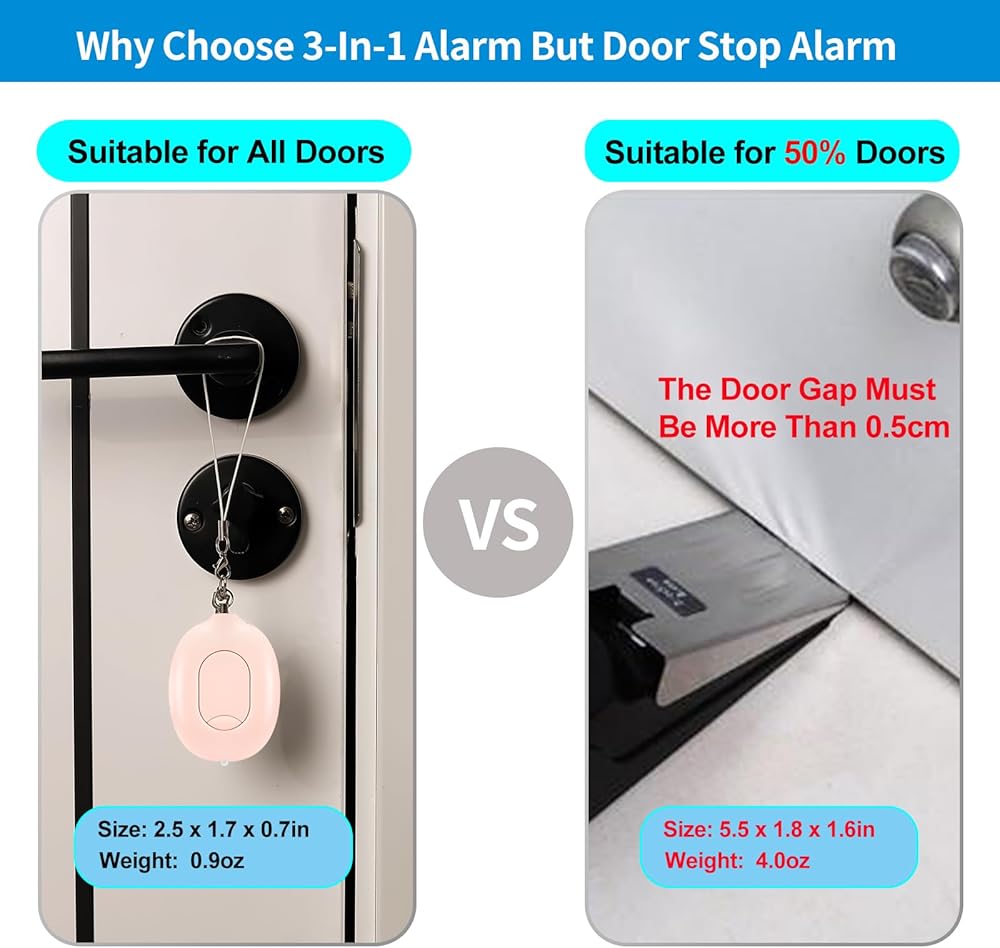 3-in-1 Alarm: It works as door open alarm, luggage anti theft alarm, and self defense personal safety alarm. When the alarm is triggered, it emits an extra loud 130dB sound siren and blinding flashing light.