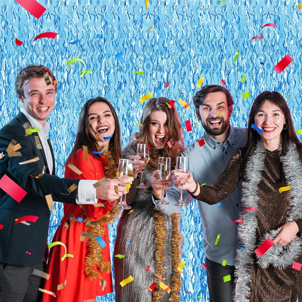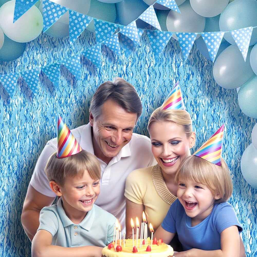 【نصائح】يرجى عدم لصق ستارة الرقائق المعدنية على الجدران غير المستوية أو الملطخة لمنعها من السقوط! أظهر إبداعك من خلال إقران خلفية المحيط الزرقاء هذه مع ستائر بهرج الألوان الأخرى لتحقيق مزيج الألوان المرغوب فيه. يمكنك وضع الصور التذكارية والبالونات واللافتات والبوم بومس والدوامات وأضواء LED والدوامات ودعائم الصور المختلفة على هذه الخلفية! سيشعر جميع الضيوف الذين يأتون لمباركتك بحبك وجمالك