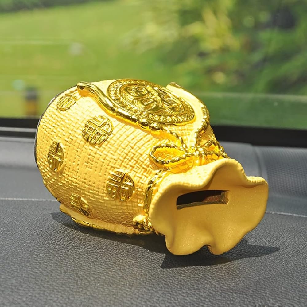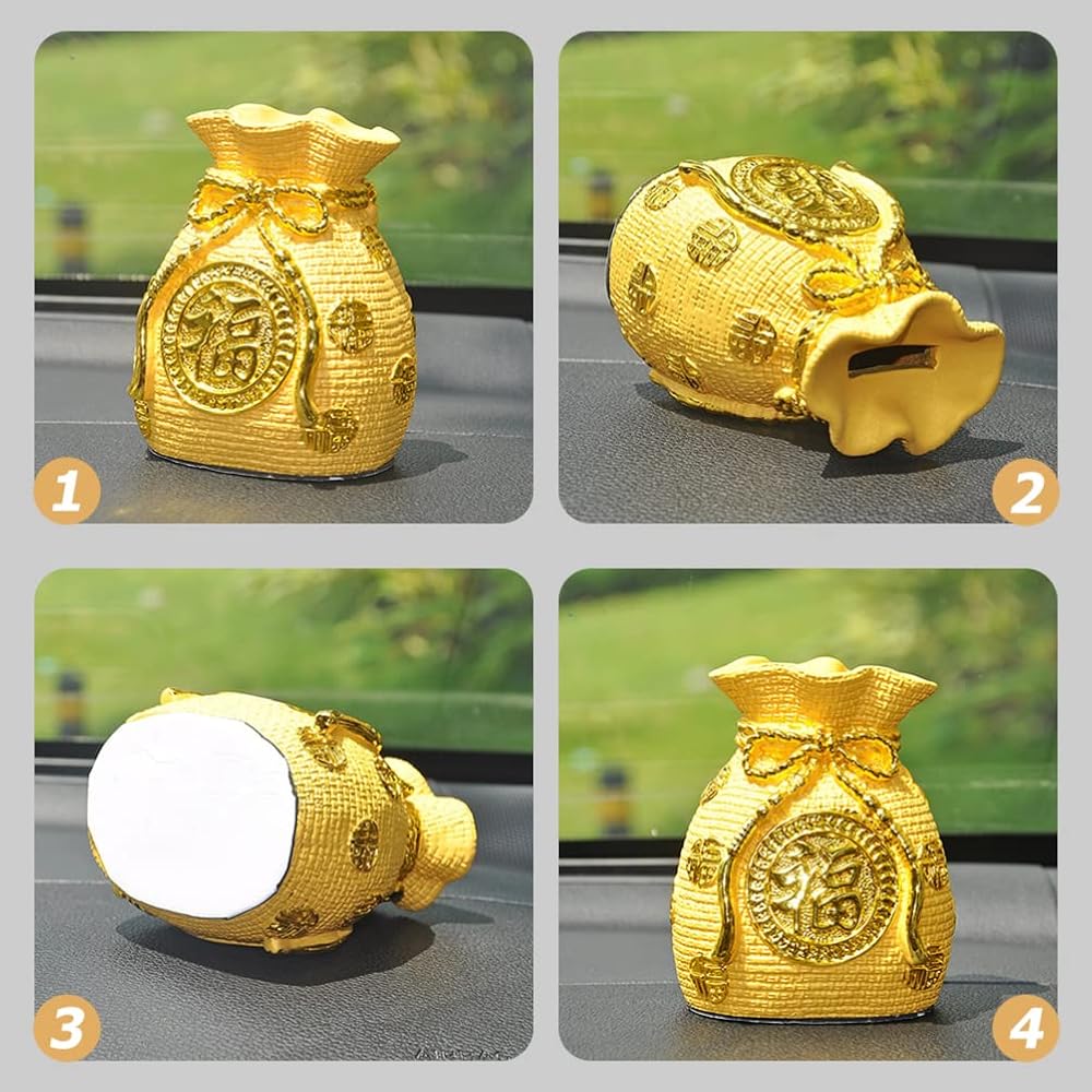 LIFKOME Lucky Bag Piggy Bank الصينية فنغ شوي حقيبة المال الثروة توفير المال بنك الثروة تمثال ذهبي عملة معدنية بنك تخزين الأموال للمنزل سطح المكتب زخرفة