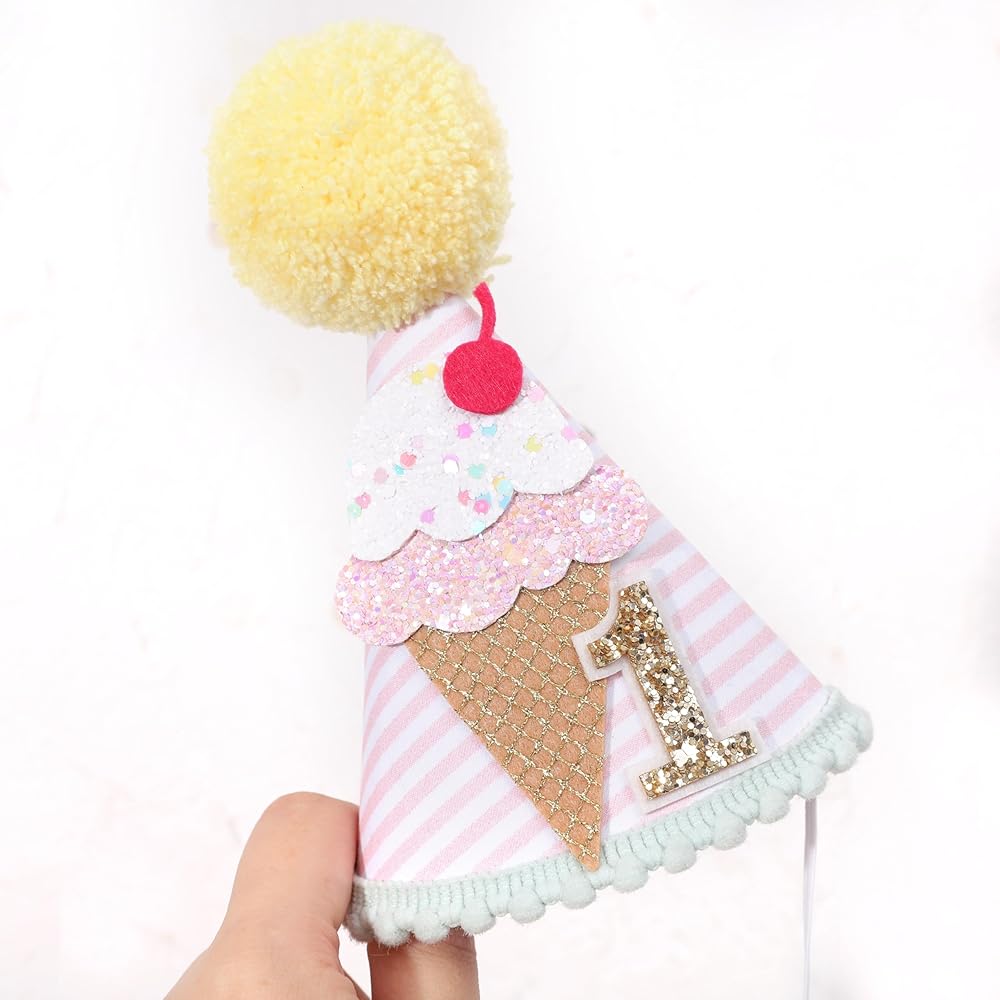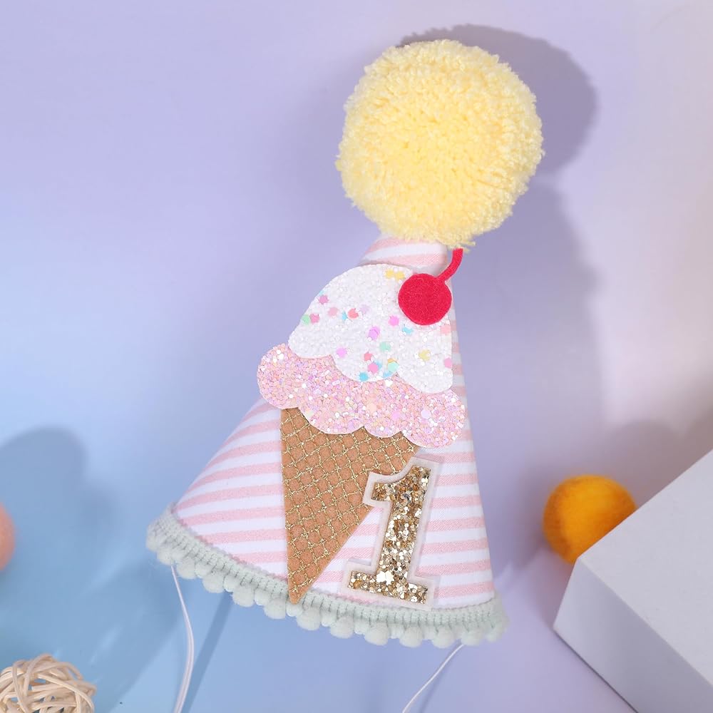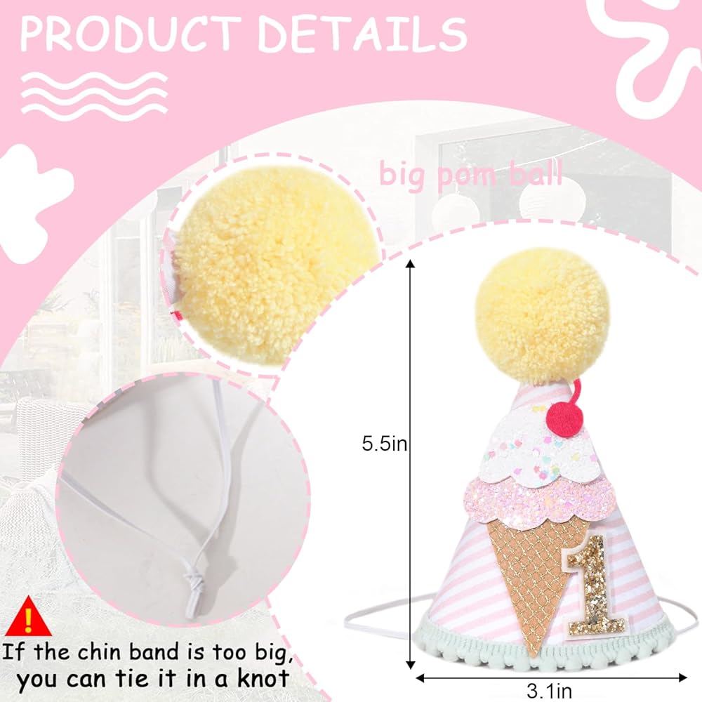 شكل مخروط الآيس كريم الذي لا يقاوم - تتميز القبعة بتصميم مخروطي الآيس كريم الساحر، وتجذب الانتباه على الفور بجمالها المرح والمبهج. تثير ألوان الباستيل إحساسًا بالحلاوة والبراءة، وهي مثالية لآيس كريم فتاة صغيرة، أو آيس كريم حلو أو أي احتفال بعيد ميلاد أول صيف.