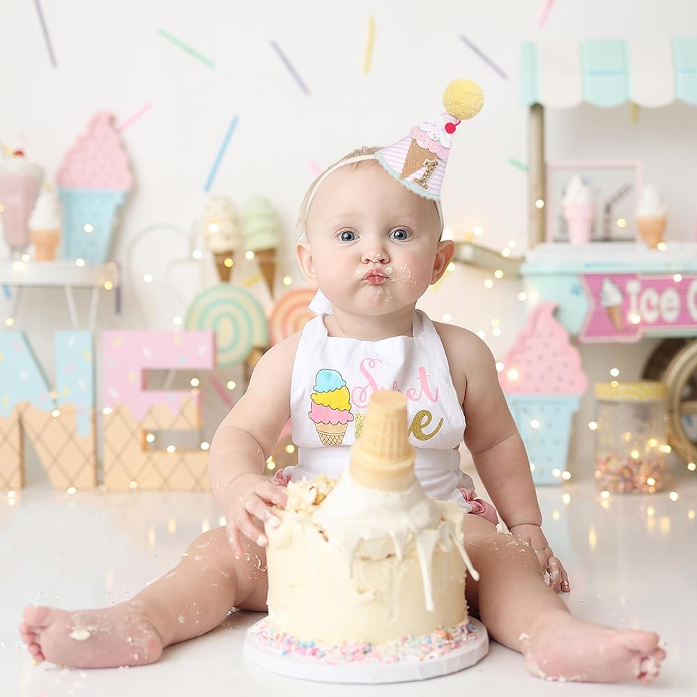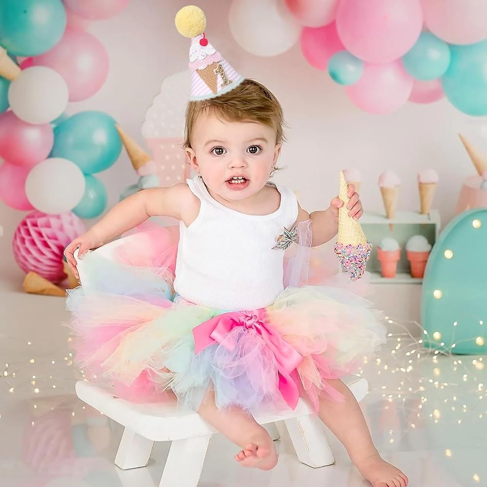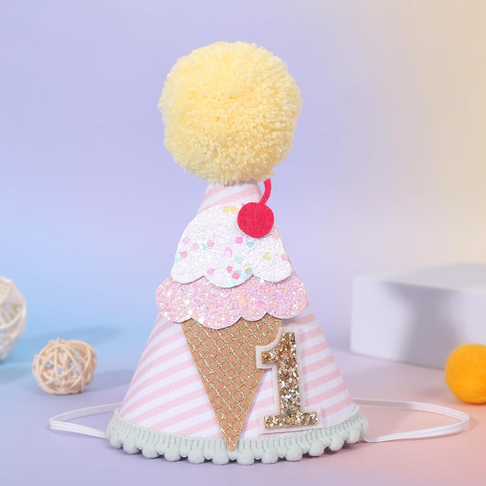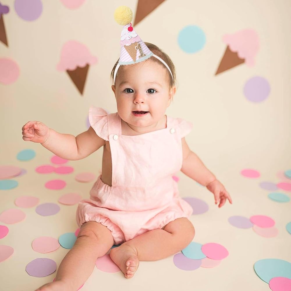 شكل مخروط الآيس كريم الذي لا يقاوم - تتميز القبعة بتصميم مخروطي الآيس كريم الساحر، وتجذب الانتباه على الفور بجمالها المرح والمبهج. تثير ألوان الباستيل إحساسًا بالحلاوة والبراءة، وهي مثالية لآيس كريم فتاة صغيرة، أو آيس كريم حلو أو أي احتفال بعيد ميلاد أول صيف.
