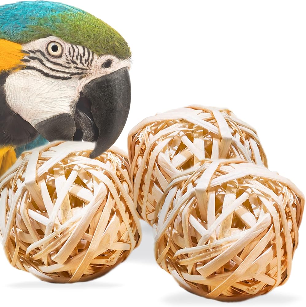 To support their physical, mental, and emotional well-being, it's important to give your parrot a variety of toys. Toys encourage exercise, relieve stress and boredom, and provide mental workout. When parrots experience stress, it can cause screaming, overplucking, and lowered immunity, or it may cause your bright bird to withdraw. You can bust stress and boredom by keeping a variety of toys on hand and rotating them. You can also choose toys, like Meric's rattan balls, that give your parrot a positive outlet for instinctual behaviors. Our ball toys are especially great because you can use them to hide your parrots favorite treats. You can add seeds or nuts. You can thread small twigs through the rattan ball for your parrot to forage. Or stuff our ball with shredded paper for your parrot to tear into! There are so many ways to personalize these toys or let your parrot enjoy them as they are creating so many ways for your parrot to play!