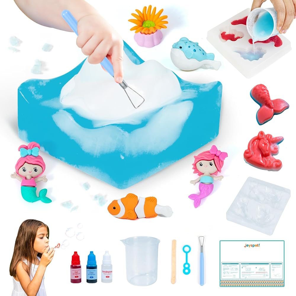 مجموعة كنوز حفر الديناصورات 3 في 1: يمكن للأطفال الآن استخراج ديناصور من صابون على شكل جبل جليدي. ولكن هذا ليس كل شيء! يمكنهم أيضًا استخدام الصابون لصنع صابون الديناصورات الخاص بهم ونفخ الفقاعات الملونة. صُممت هذه المجموعة للأطفال من سن 3 إلى 14 عامًا، وتتضمن صابون جليد مع نموذج ديناصور، وأداة حفر، وقوالب ديناصور بأربعة أشكال مختلفة، وكوب قياس 150 مل، وعصا تحريك، وصبغتين، وعطر، وحصيرة ورقية. مع عدم وجود مواد مهدرة أو مهملة، تعد هذه اللعبة استثمارًا رائعًا