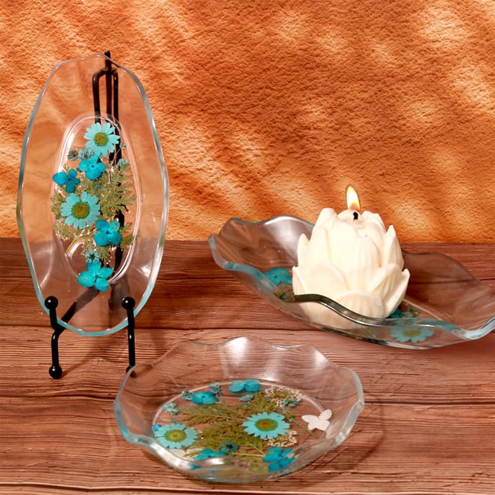 【قوالب صينية إيبوكسي صغيرة】يتميز قالب صينية الصحن السيليكون بحافة مموجة غير منتظمة، والشكل الخاص يجعلها قطعة مركزية ممتعة على أي طاولة. يمكنك إضافة مادة لامعة أو ترتر أو طلاء راتنج أو خرز أو زهور مجففة أو غيرها من ملحقات الراتنج إلى قوالب السيليكون لإنشاء حرفة الراتنج