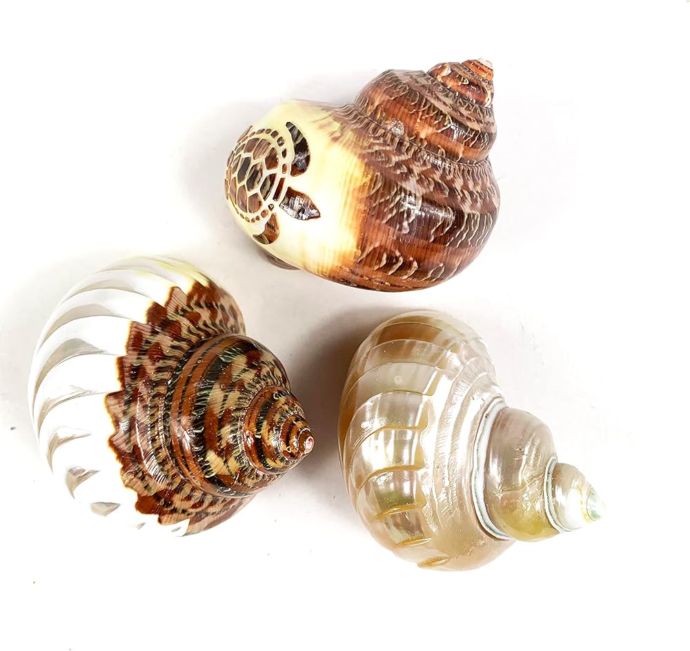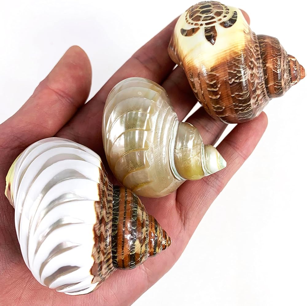 Heyiwell 3PC Assorted Carved Turbo Shells,Hermit Crab Shell&Turbo Shells Hermit Crab Supplies for Decor 2"~ 2.5"Inch