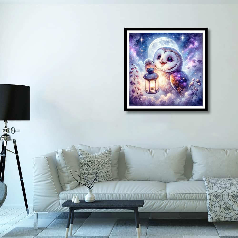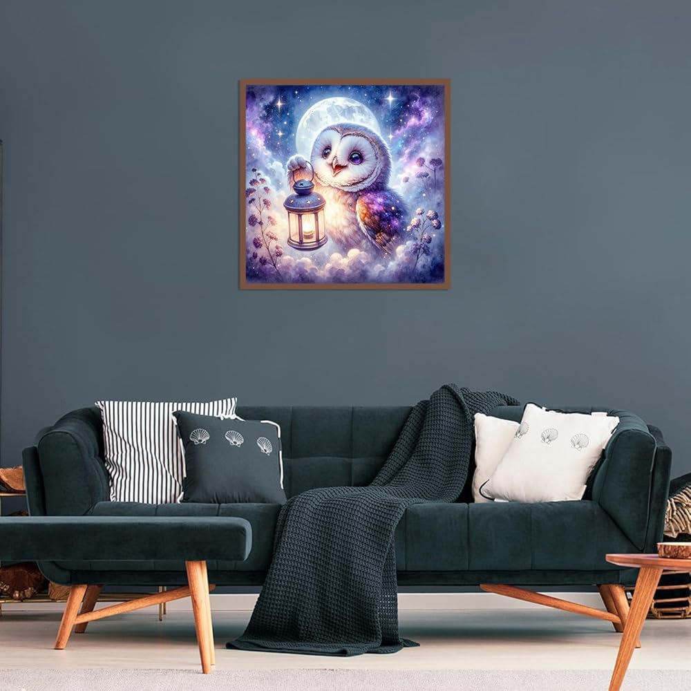 لوحة فنية ماسية على شكل بومة ديكور فريد من نوعه: مجموعة فنية ماسية مثقبة بالكامل على شكل قمر للبالغين، مثالية لتزيين غرفة نومك، وغرفة الطعام، والحمام، والحمام، والمطبخ، والدراسة، والمنزل، والمكتب، والفندق، والمطاعم، والبار، لامعة في الضوء.