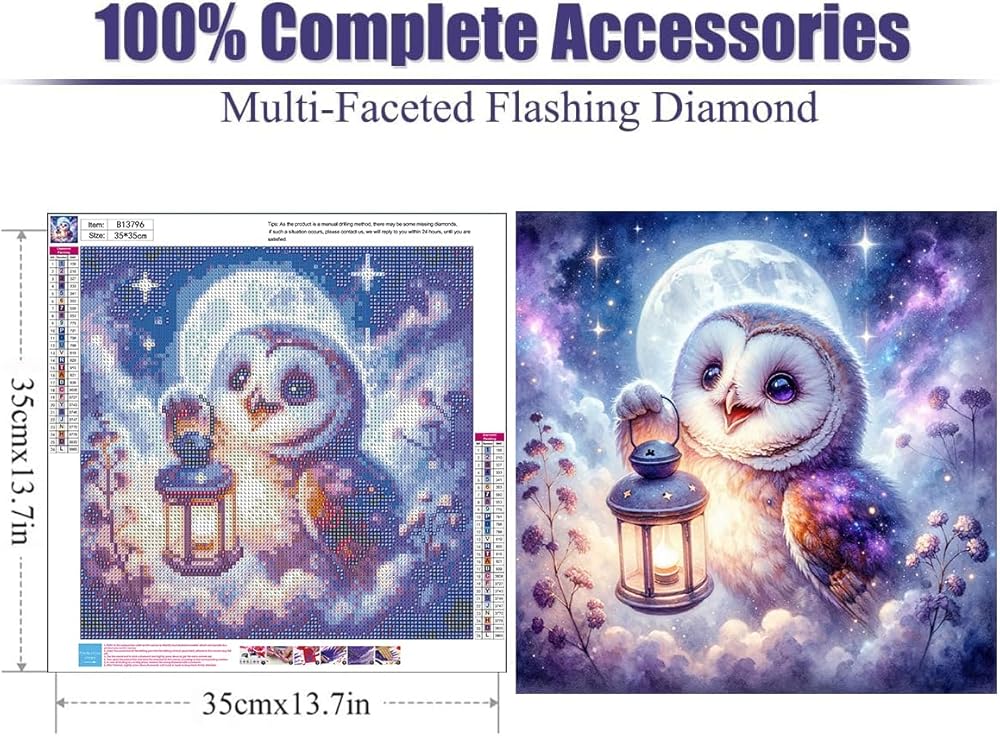 خدمة ما بعد البيع: فن الأحجار الكريمة لدينا هو جميع المنتجات عالية الجودة. ألوان زاهية وصور ورموز واضحة، مثالية للمبتدئين. إذا كان هناك أي ألماس مفقود أو تالف بعد استلام اللوحة الماسية البومة الخاصة بك، فيرجى الاتصال بنا عبر البريد الإلكتروني وسوف نقوم بالرد في غضون 24 ساعة، لتحقيق تجربة تسوق مرضية بنسبة 100% لك.