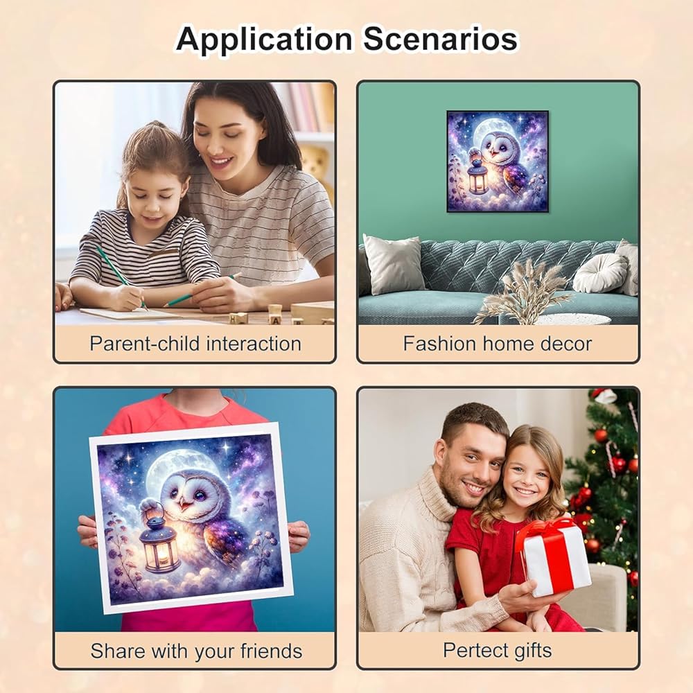 مناسبة للترفيه والترفيه: تساعد مجموعات الرسم الماسي البومة والخفيفة للبالغين على تخفيف جميع أنواع التوتر وقتل وقت الفراغ. مجموعات الرسم الفني الماسي هي لوحة ماسية حسب الرقم، لون واحد يتوافق مع رقم واحد. يمكنك العثور على التعليمات المقابلة على القماش بحرية تامة. حتى المبتدئ يمكنه القيام بذلك بسهولة.